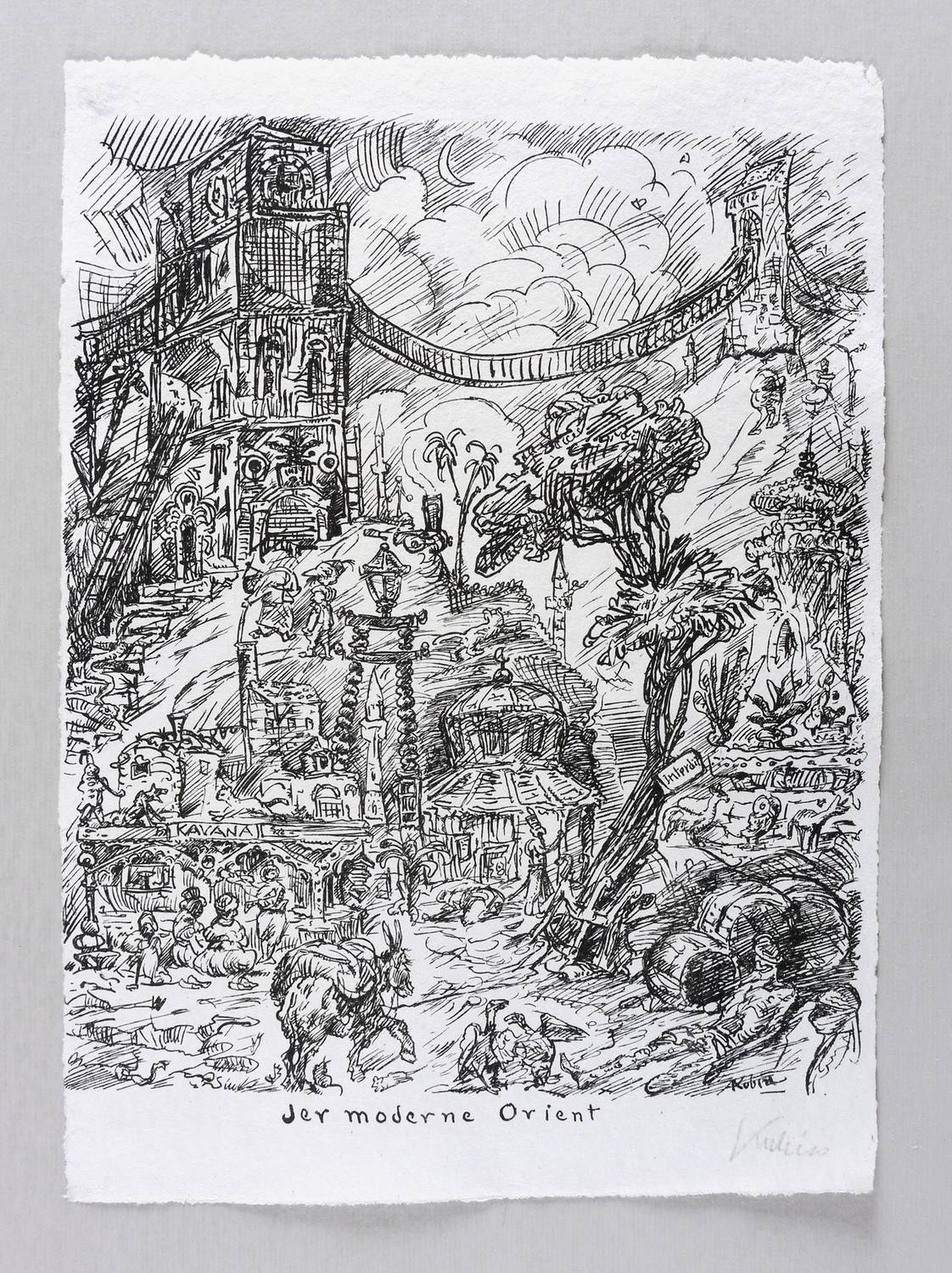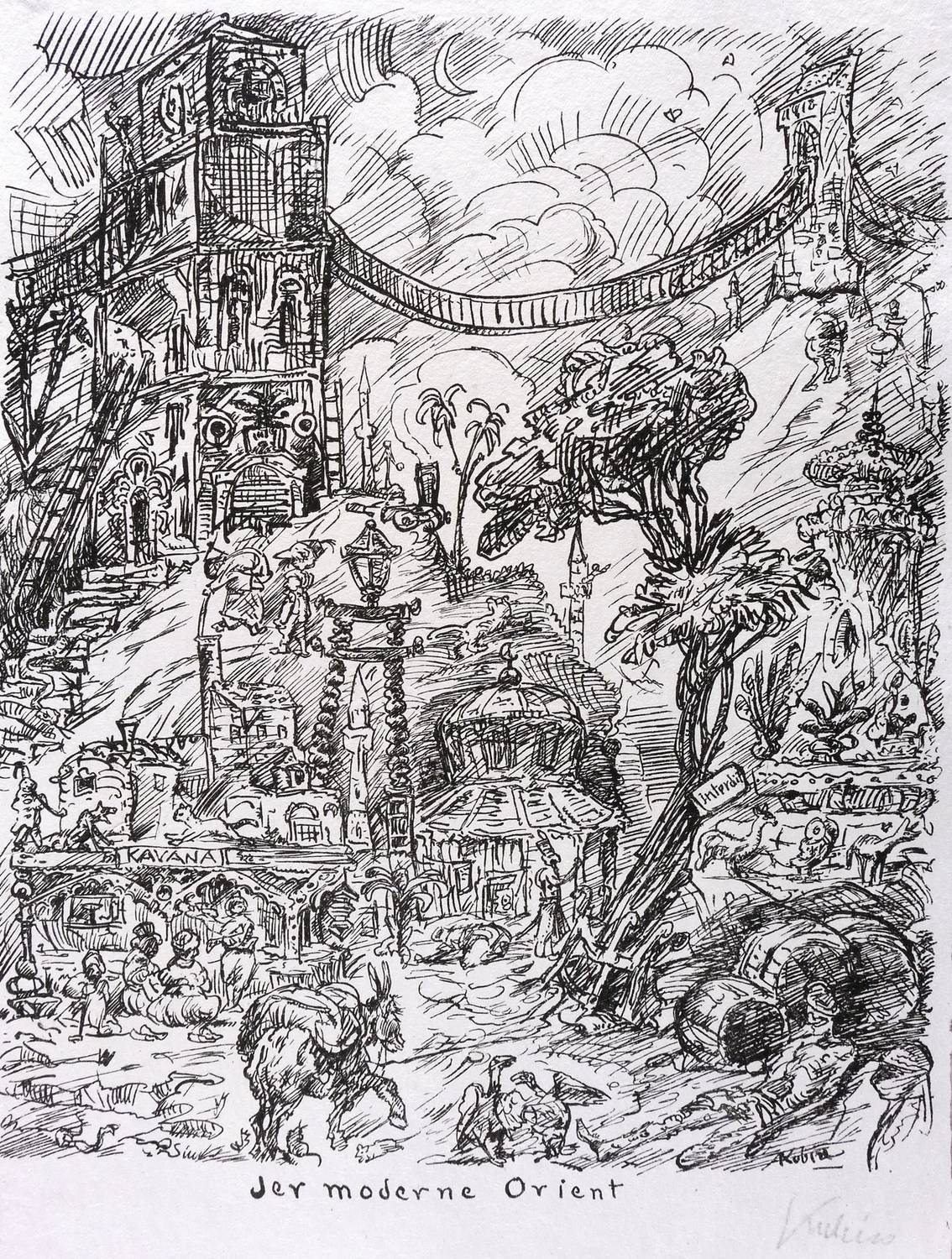 Raabe 168. – Rechts unten in Bleistift signiert: ″Kubin″. Im Stein rechts unten nochmals Signatur: ″Kubin″. Unterhalb mittig Titel: ″Der moderne Orient″. – Tadellos erhalten. Sehr guter Zustand.