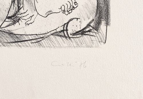 Rechts unten in Bleistift signiert und datiert: ″Gille 86″. Links Titel: ″Nach japanese erotic art II″. Im Stein rechts oben spiegelverjehrte Inschrift: ″SHUNSHO 1780″. – Sehr guter Zustand.