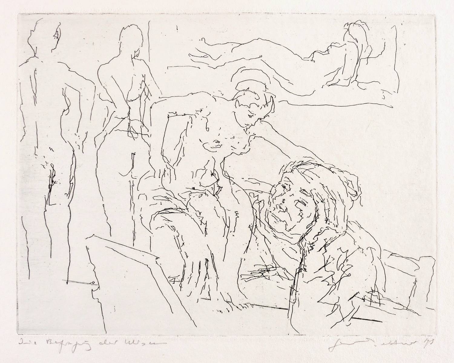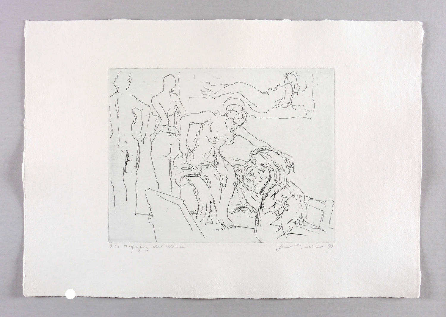 Rechts unten in Bleistift signiert und datiert: ″Gerhard Kettner 79″. Links Titel: ″Die Befragung der Musen″. Wasserzeichen der Hahnemühle. – Sehr guter Zustand.