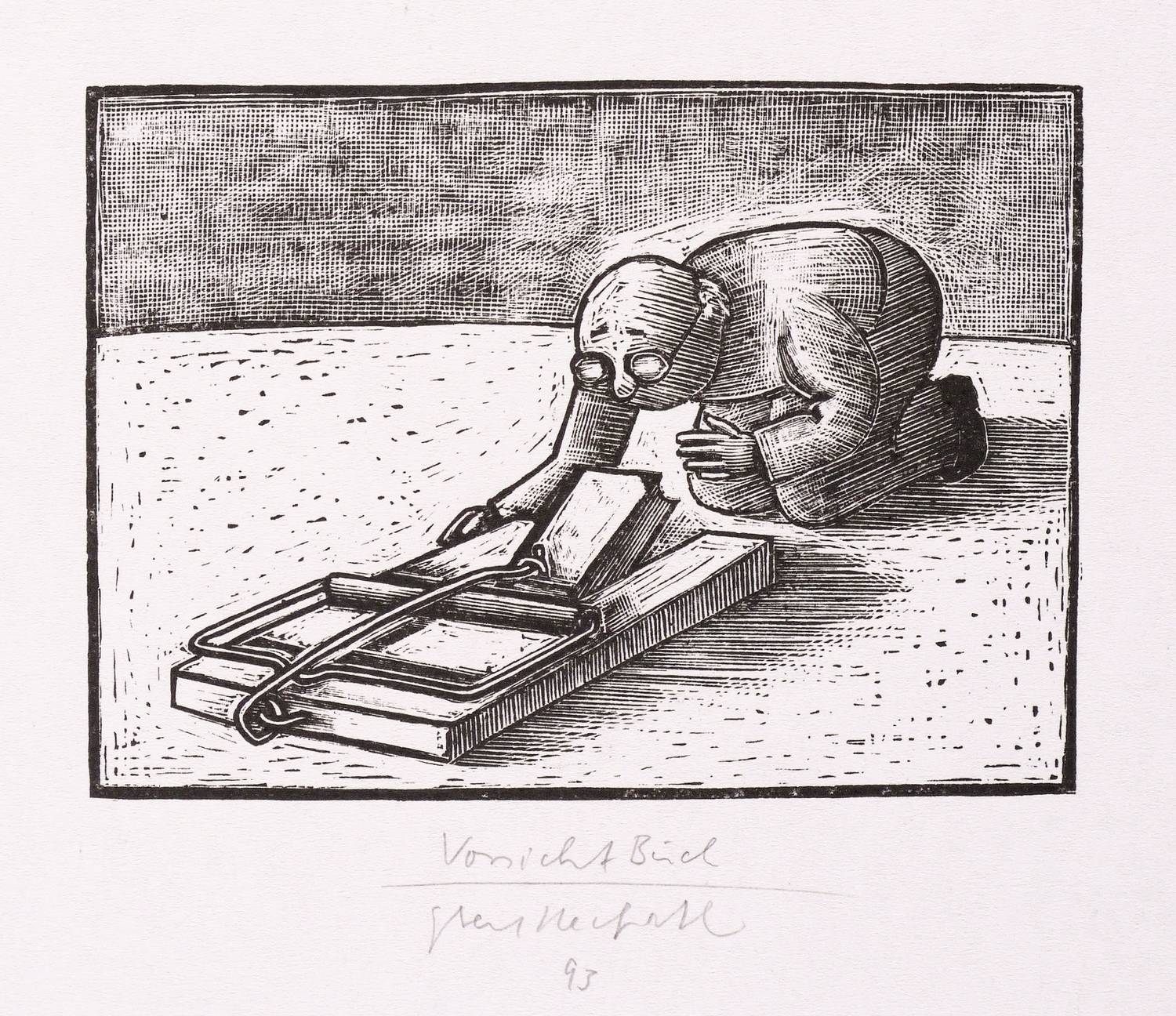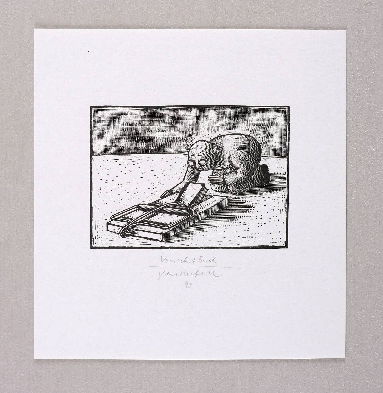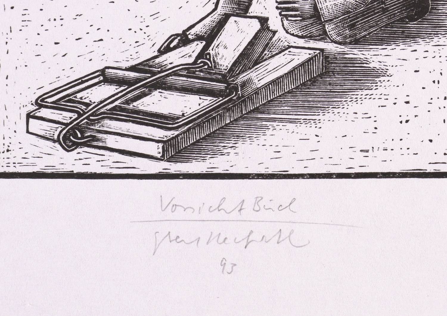 Unterhalb in Bleistift signiert und datiert: ″Egbert Herfurth 93″. Darüber Titel: ″Vorsicht Buch″. – Tadelloses Exemplar. Sehr guter Zustand.