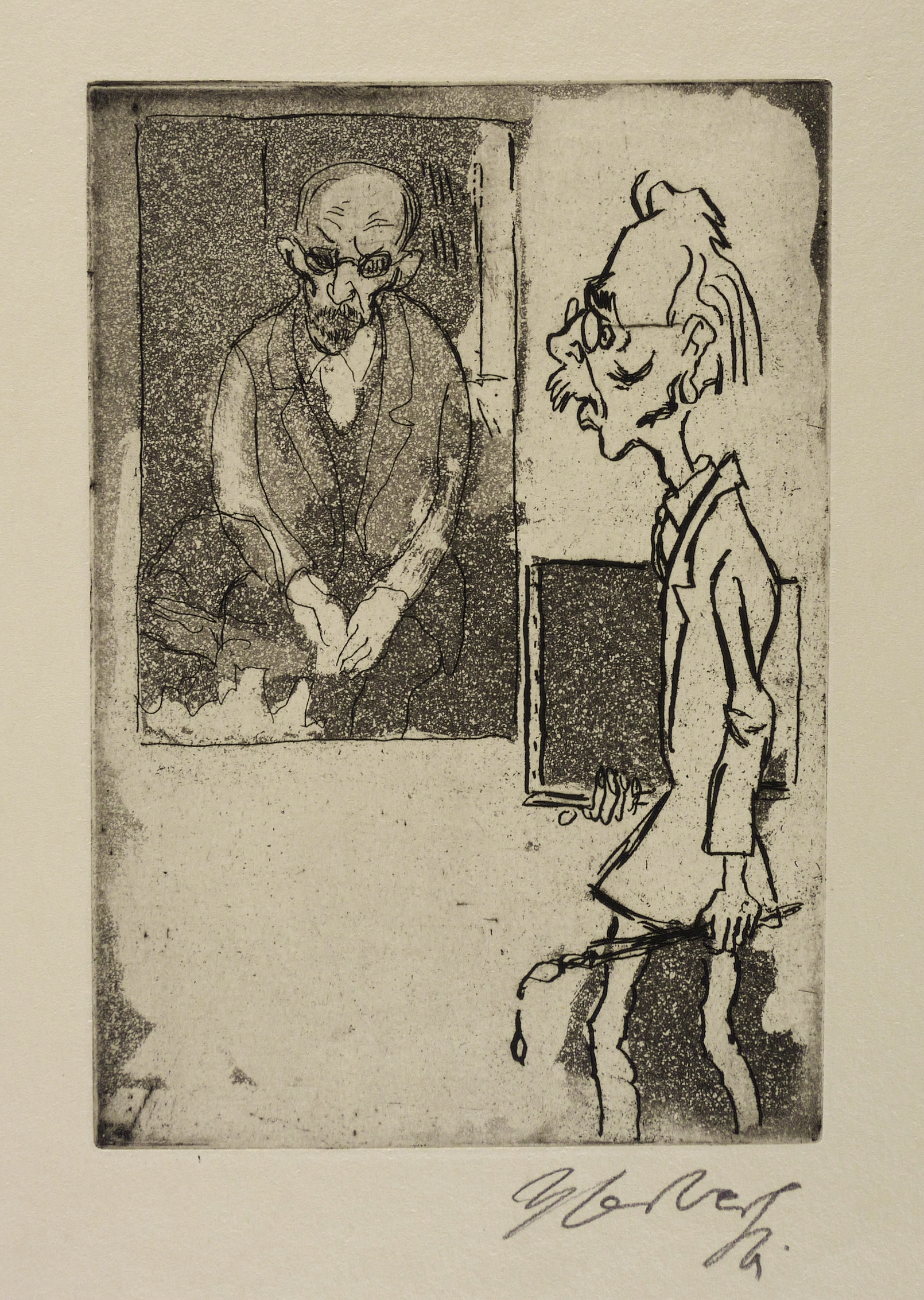 Rechts unten in Bleistift signiert und datiert: ″HSandberg 61″. – Im Hintergrund links abgebildet das Gemälde ″Der Jubilar″ aus dem Jahr 1925. – Tadellos. Sehr guter Zustand.