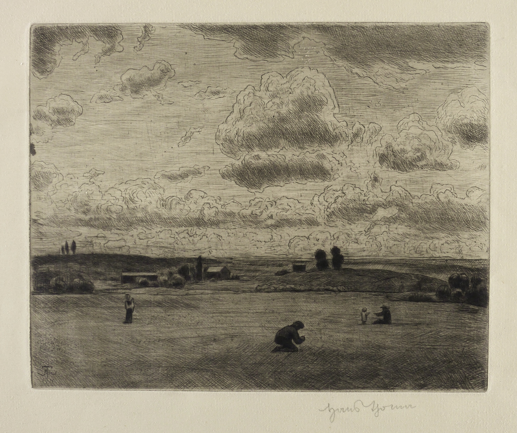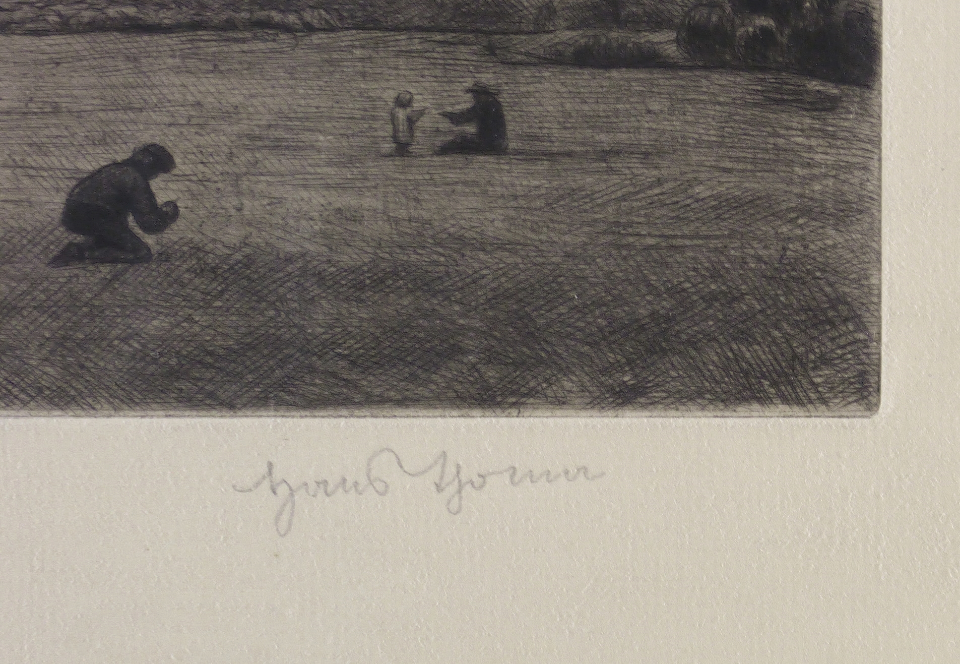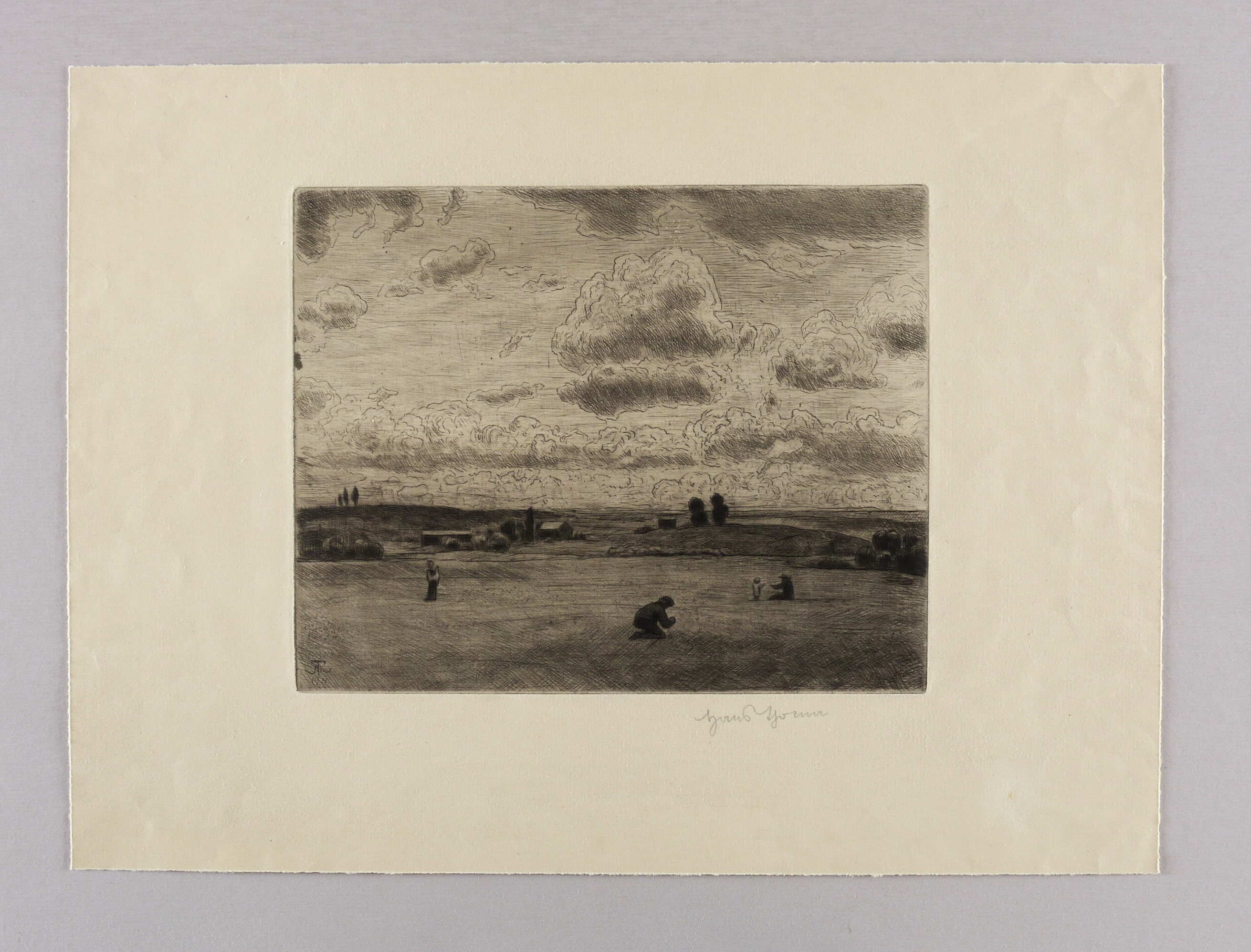 1911. Radierung / Strichätzung & Kaltnadel, in Schwarz, auf festem gelbem Van-Gelder-Zonen. – Originale Künstlergrafik, von Hans Thoma. – 19,8 x 24,8 cm (Darstellung / Platte), 32 x 43 cm (Blatt).