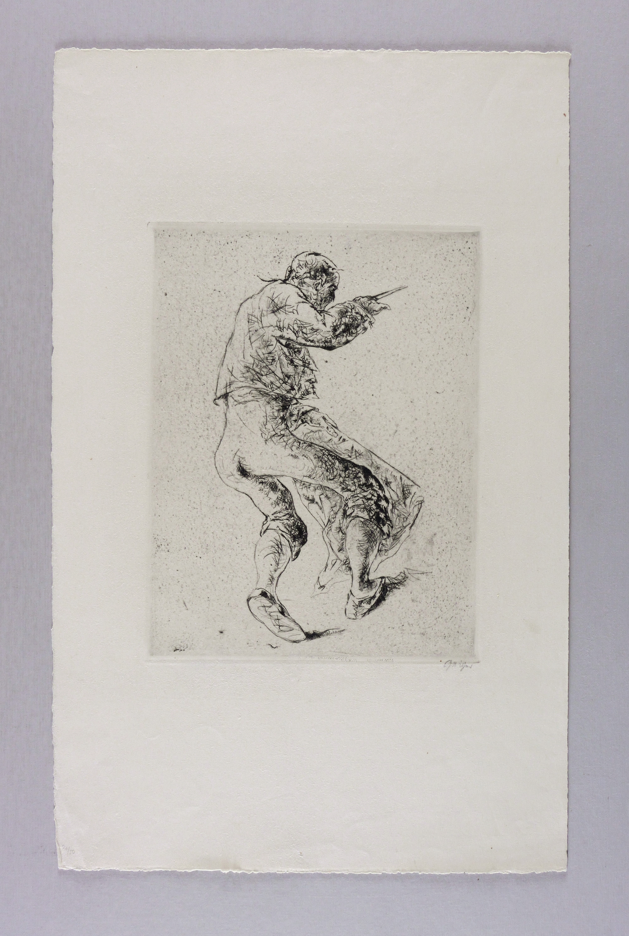 1907. Radierung / Kaltnadel, in Schwarz, auf hellgelbem Van-Gelder-Zonen-Velin. – Originale Künstlergrafik, von Willi Geiger. – Auflage Exemplar Nr. 20/50. – 27,2 x 20,5 cm (Darstellung / Platte), 51 x 32 cm (Blatt).