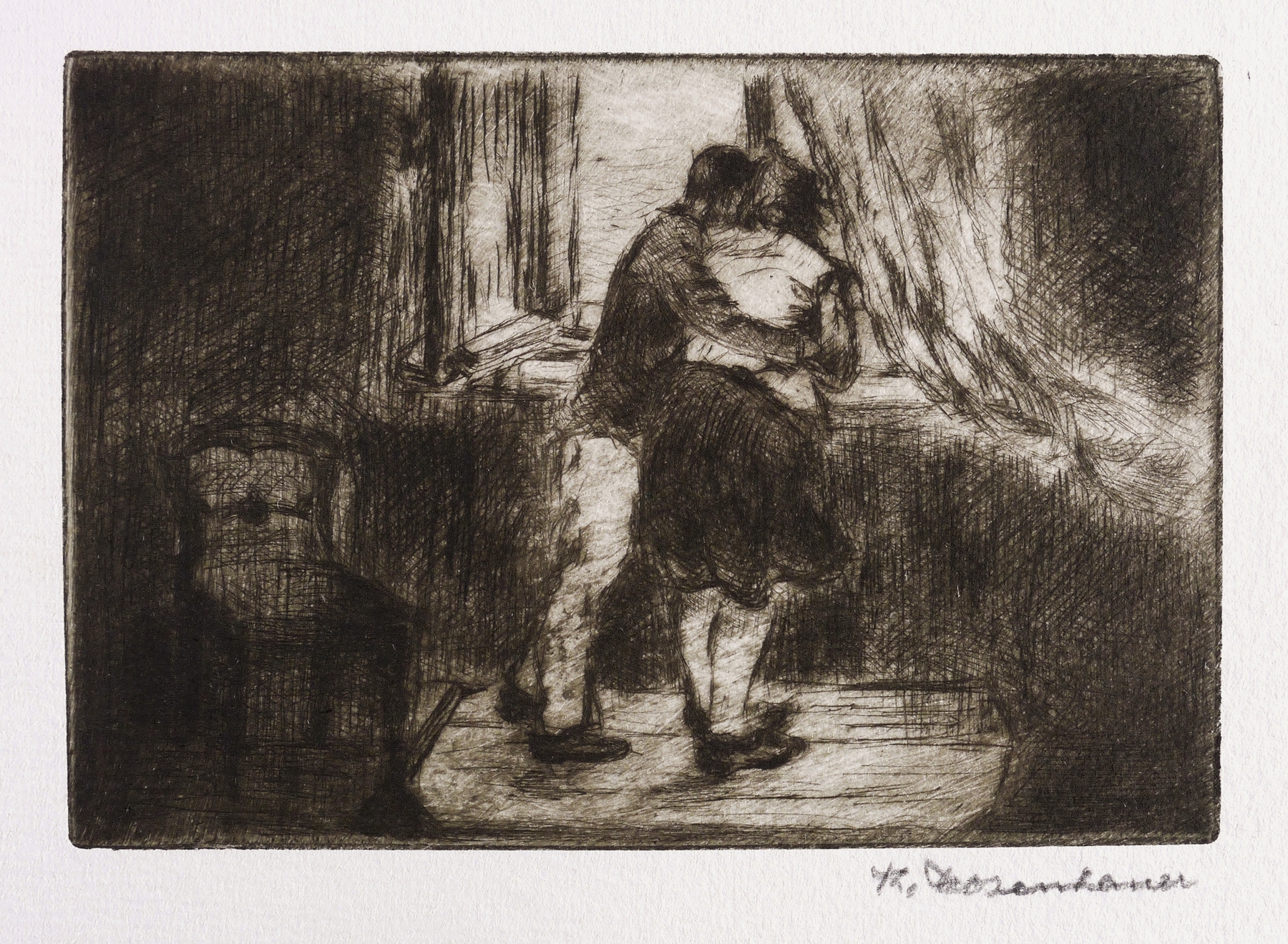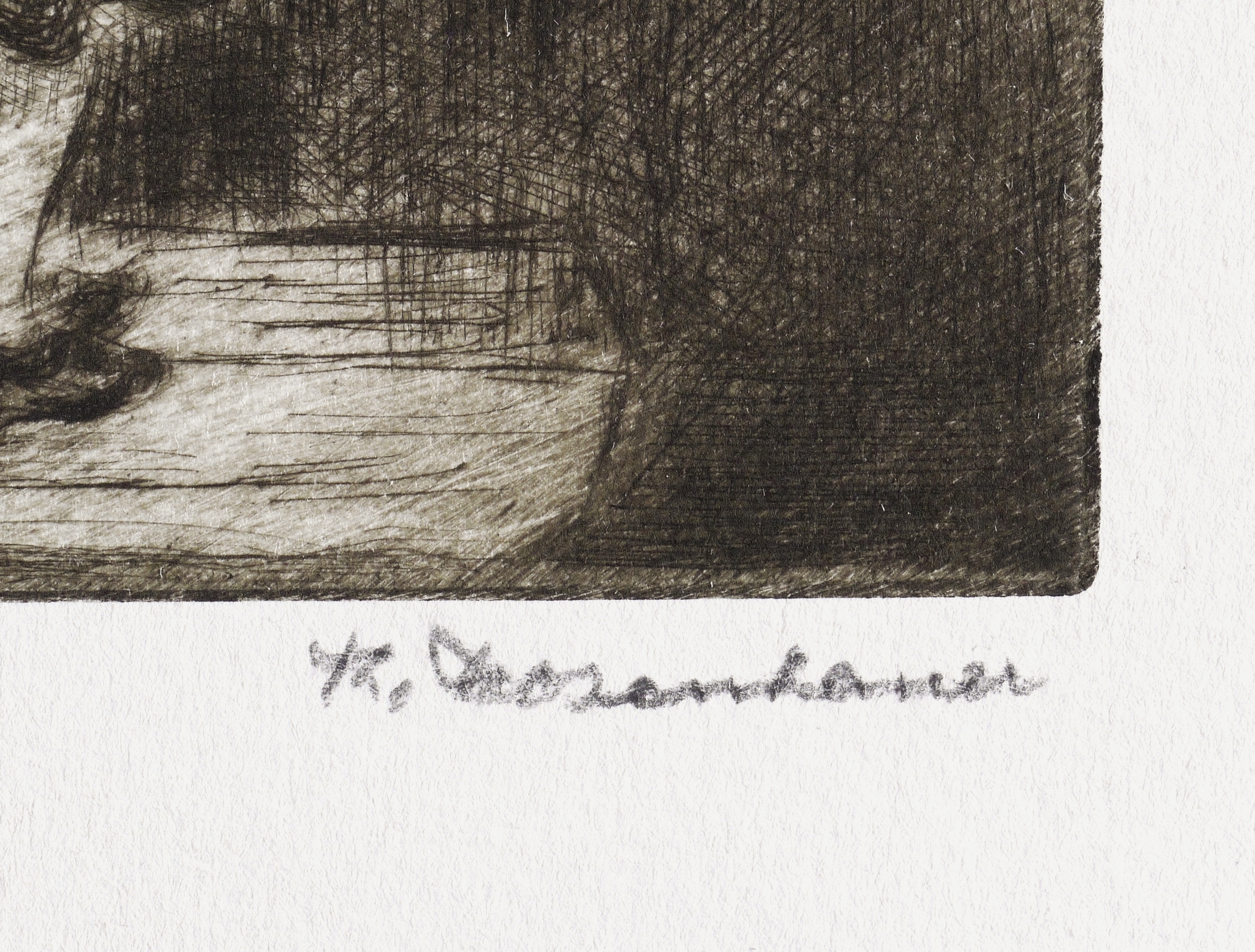1945. Radierung / Strichätzung & Kaltnadel, in Schwarz, auf hellchamois Velinkarton. – Originale Künstlergrafik, von Theodor Rosenhauer. – 12,4 x 18,0 cm (Darstellung / Platte), 21 x 21 cm (Blatt).