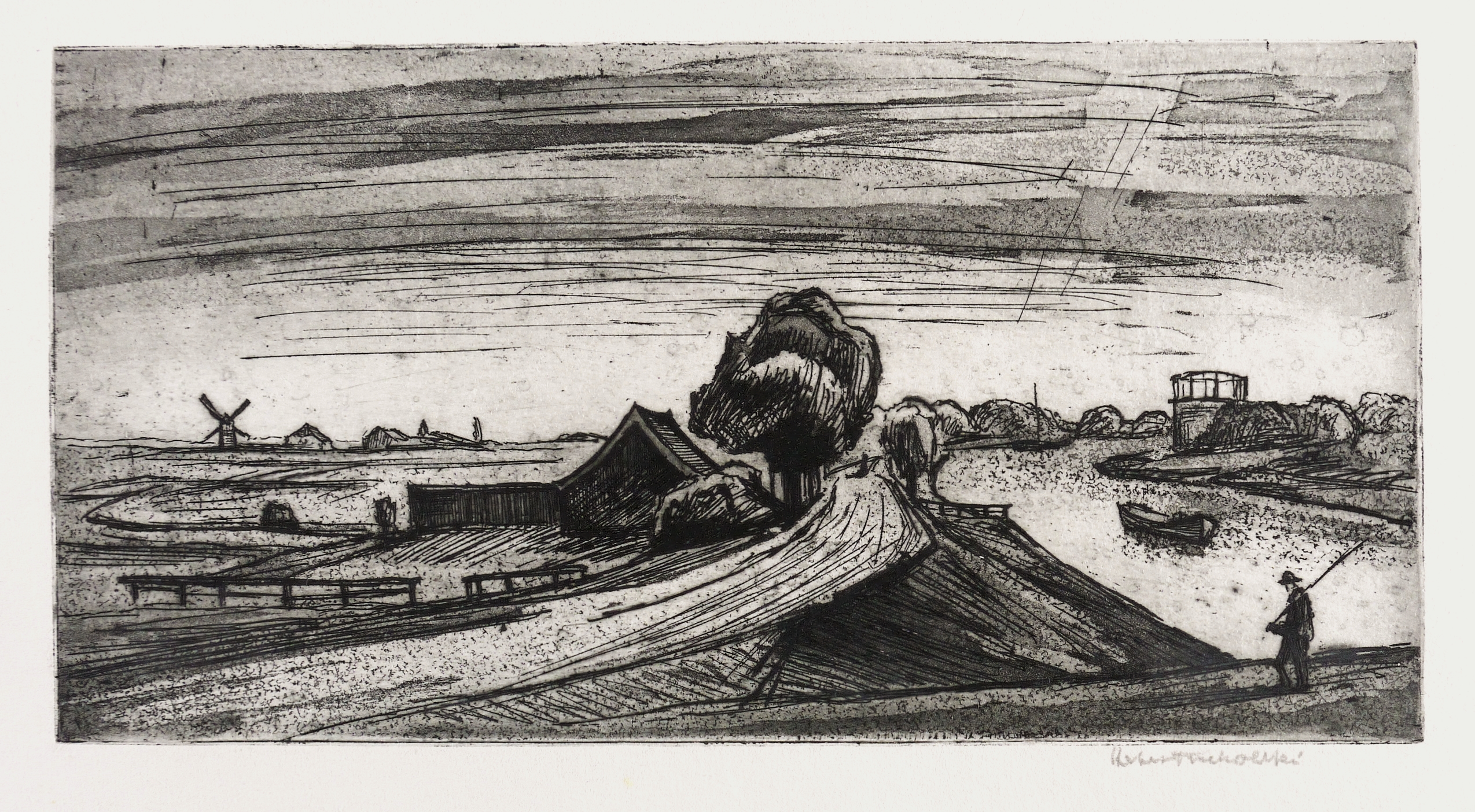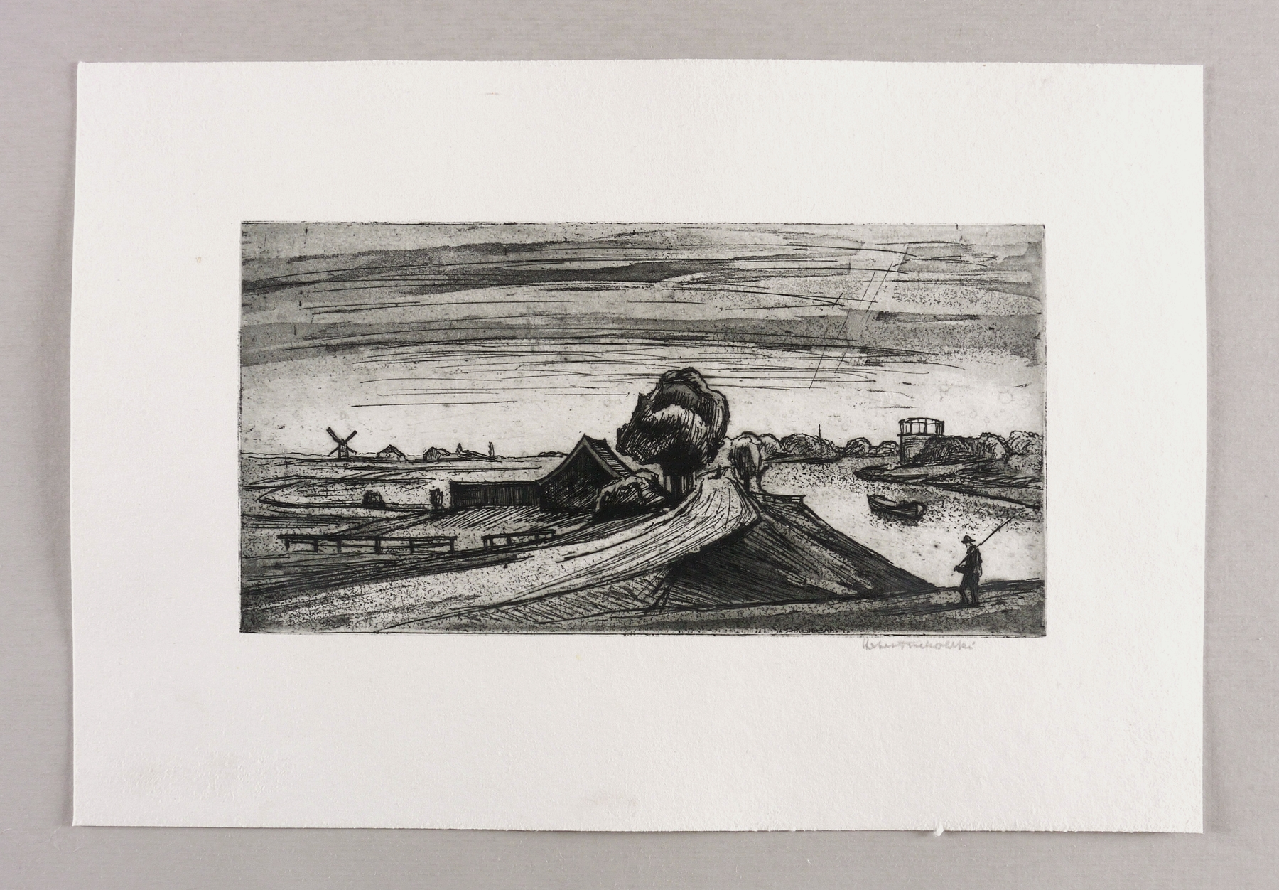 Rechts unten in Bleistift signiert: ″Herbert Tucholski″. – Entspricht in Größe und Komposition (spiegelverkehrt) der Kaltnadelradierung ″Kanal bei Edam″ von 1934, die wiederum auf eine Bleistiftzeichnung von 1928 zurückging (vgl. WVZ Karnahl Nr. 152). – Sehr guter Zustand.