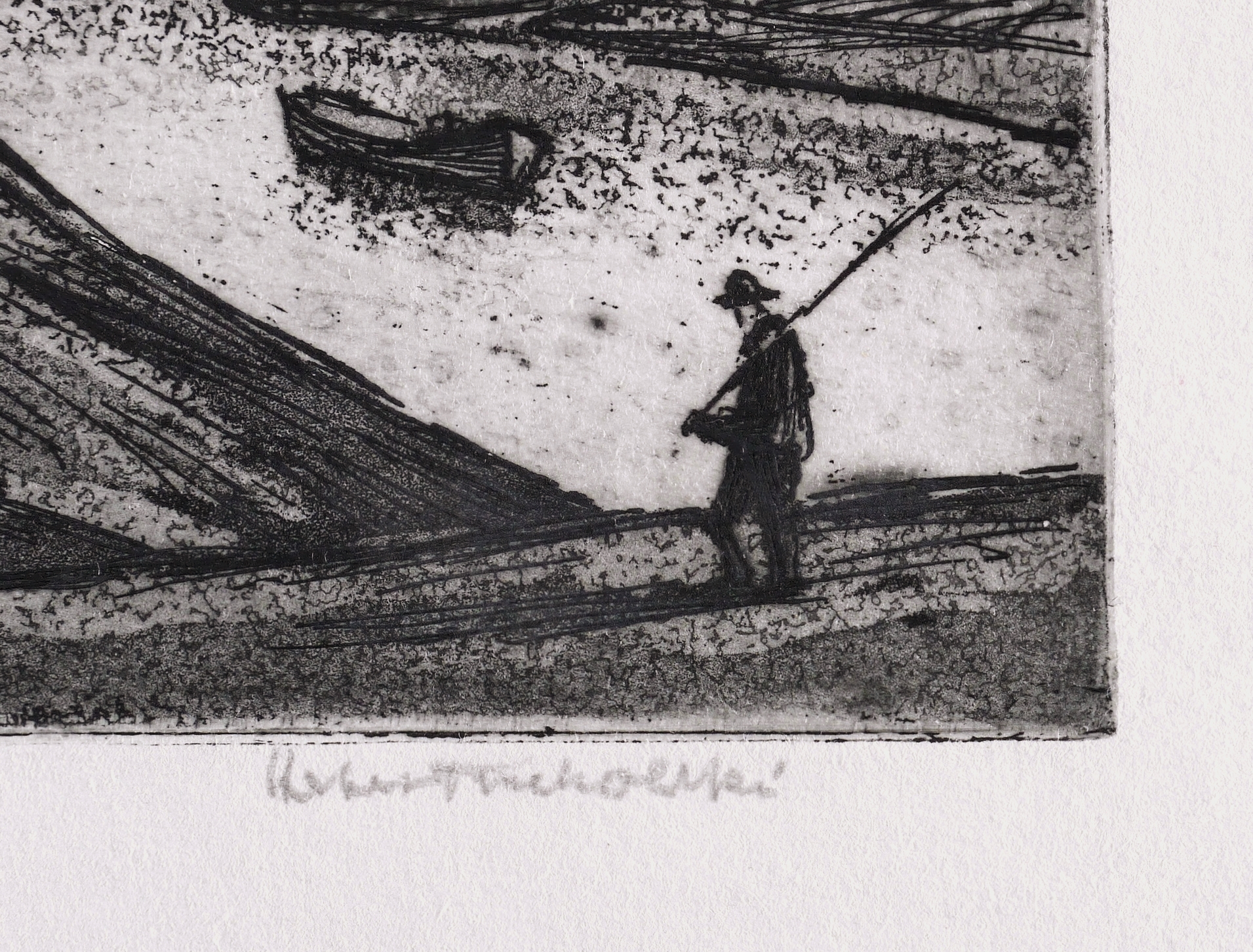 1940-1950. Radierung / Strichätzung & Aquatinta, von 2 Platten, in Schwarz, auf schwerem hellgelbem Velin. – Originale Künstlergrafik, von Herbert Tucholski. – 14,2 x 27,5 cm (Darstellung / Platte), 27 x 39 cm (Blatt).