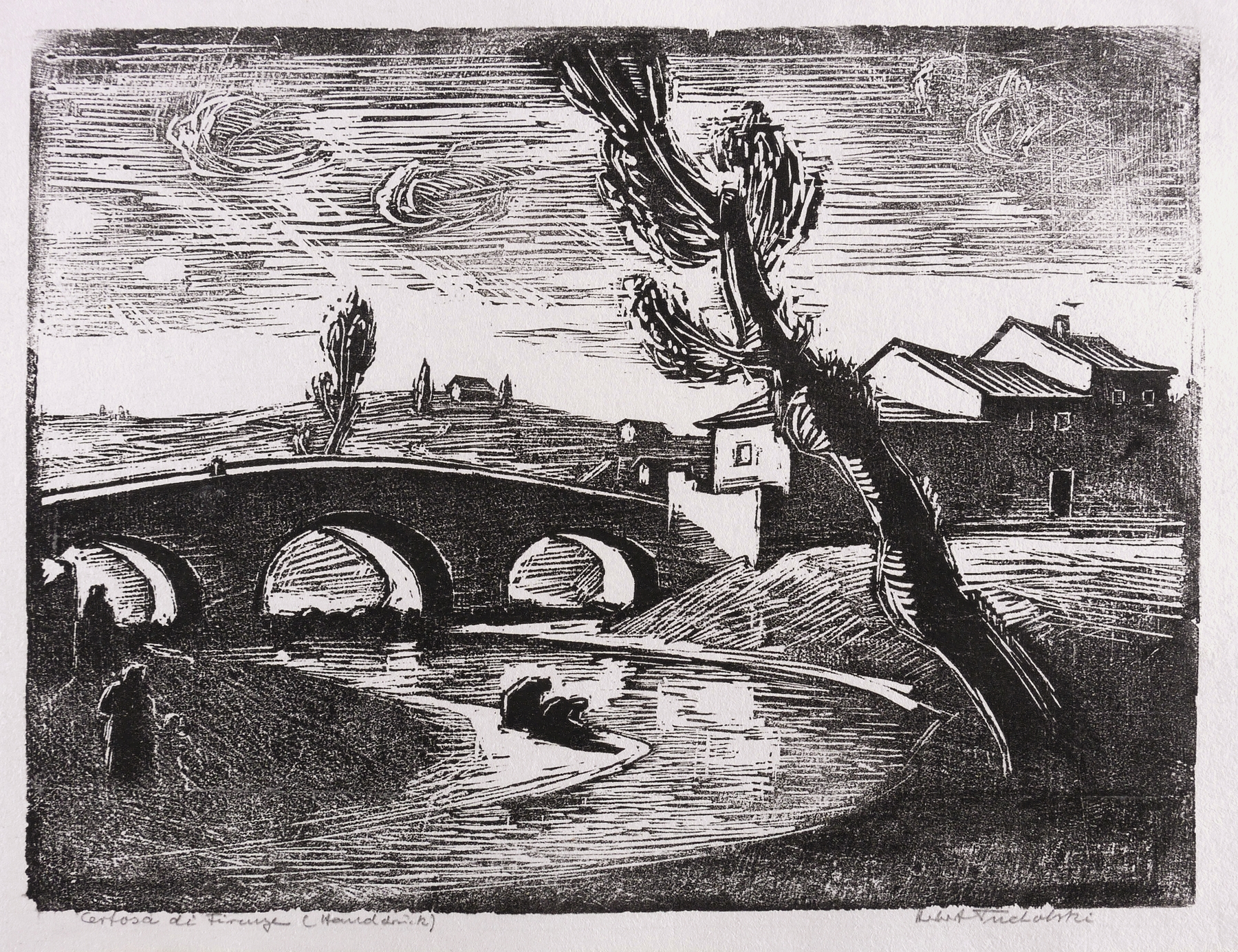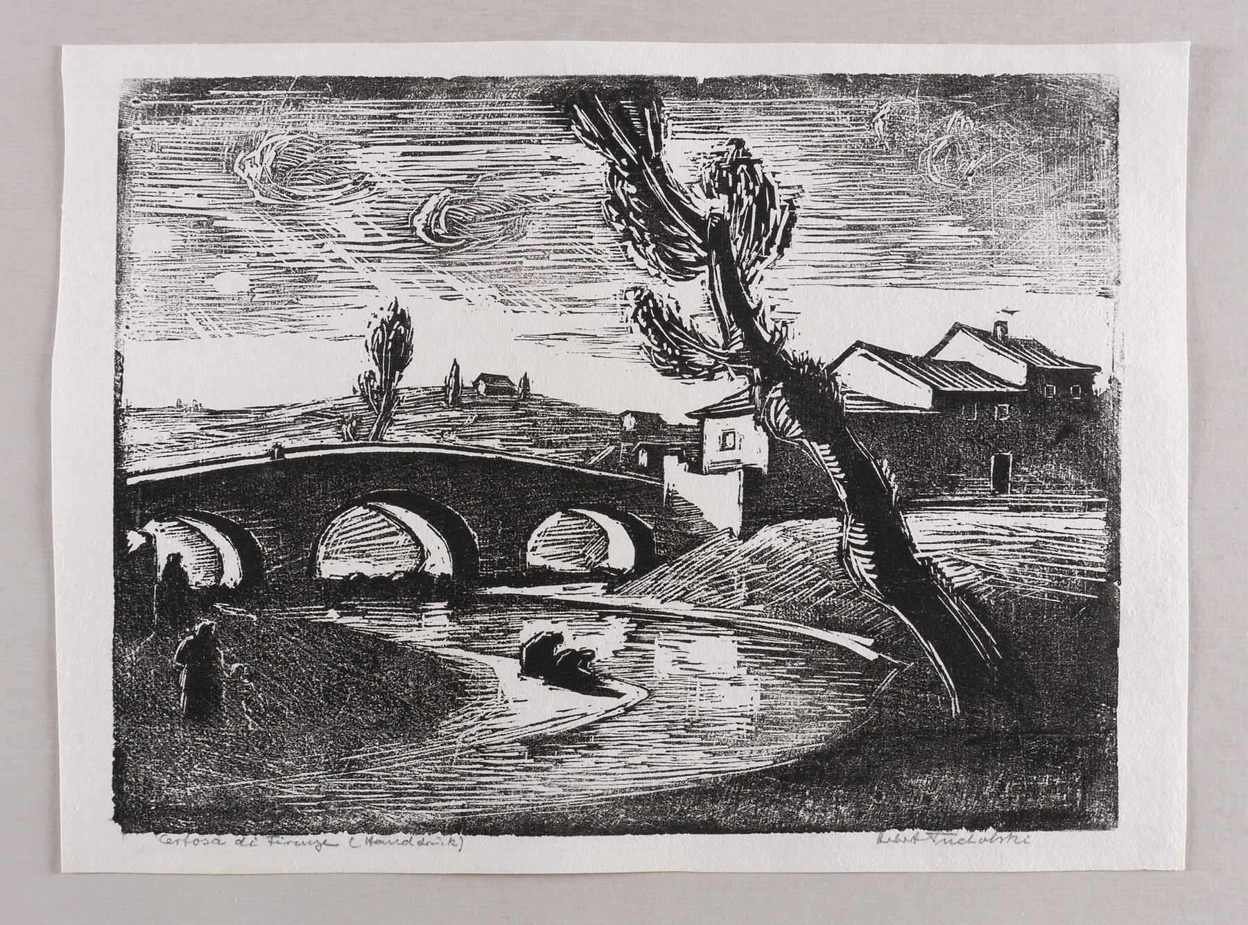 Karnahl 78. – Rechts unten in Bleistift signiert: ″Herbert Tucholski″. Links Titel und Technikbezeichnung: ″Certosa di Firenze (Handdruck)″. – Hervorragend erhalten. Sehr guter Zustand.