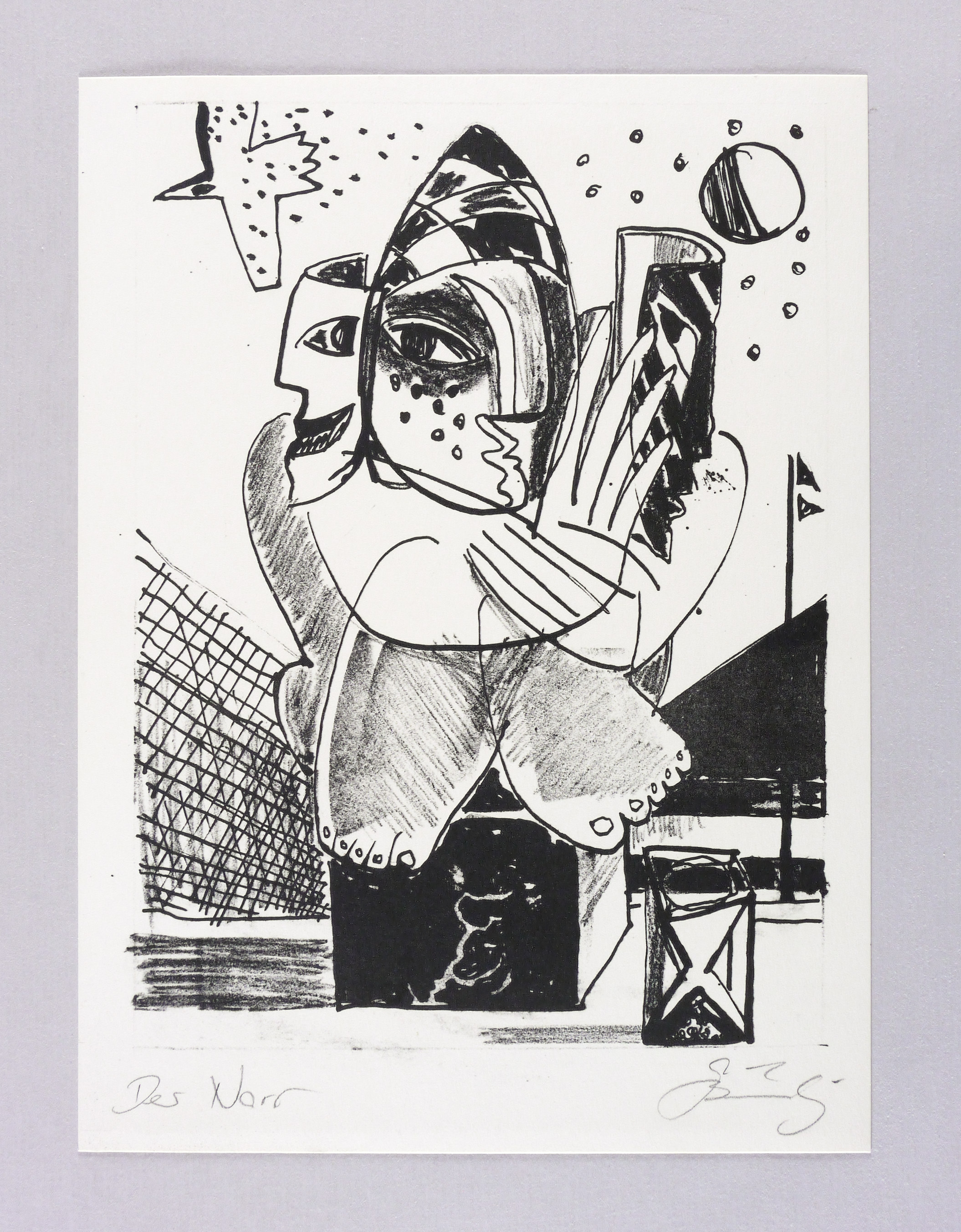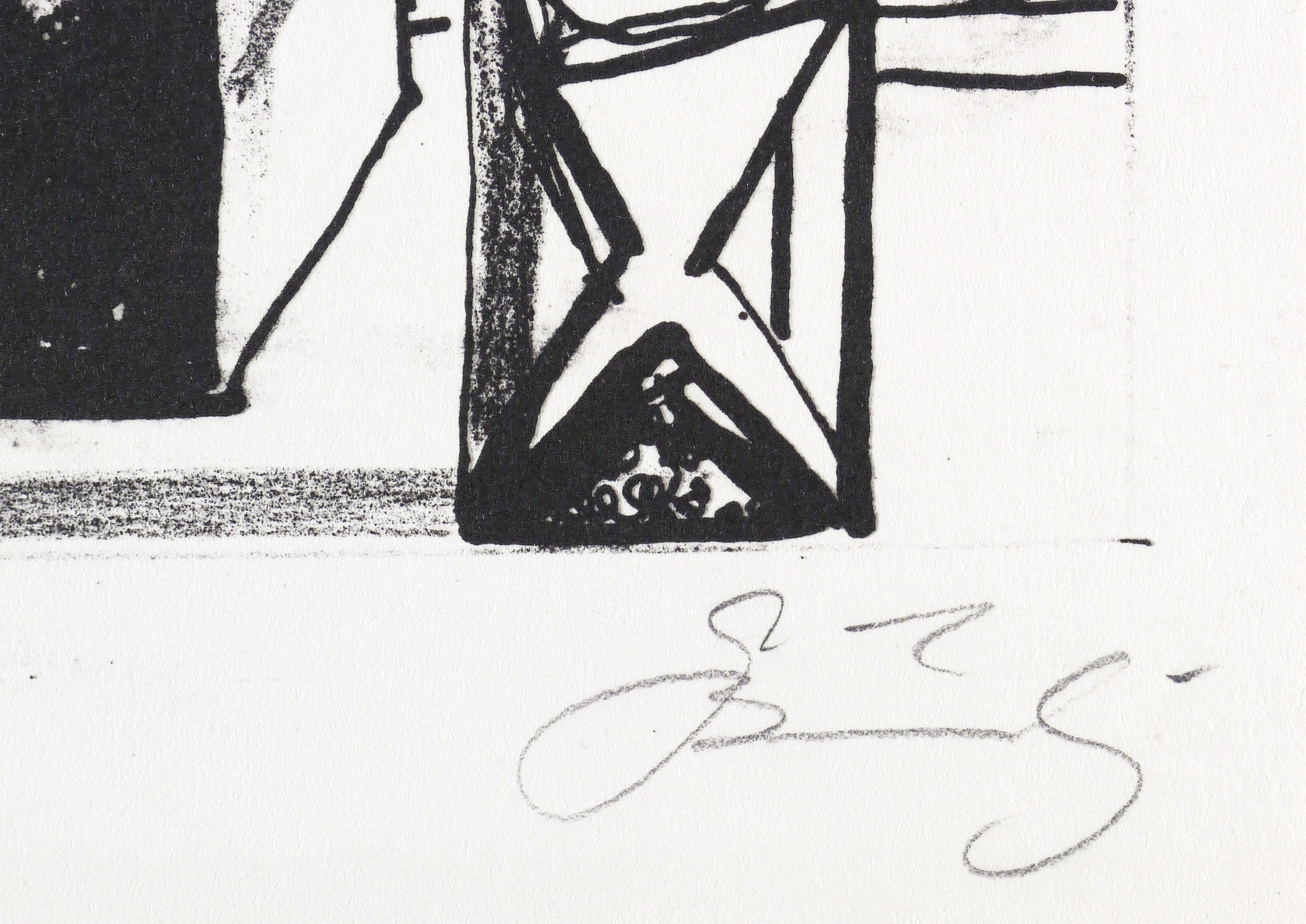 1985. Lithografie / Kreide- & Pinsellithografie, in Schwarz, auf hartem hellchamois Velin. – Originale Künstlergrafik, von Gottfried Bräunling. – 23,0 x 16,9 cm (Darstellung / Druckbild), 27 x 20 cm (Blatt).