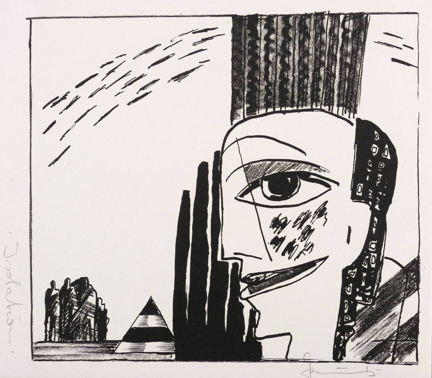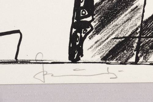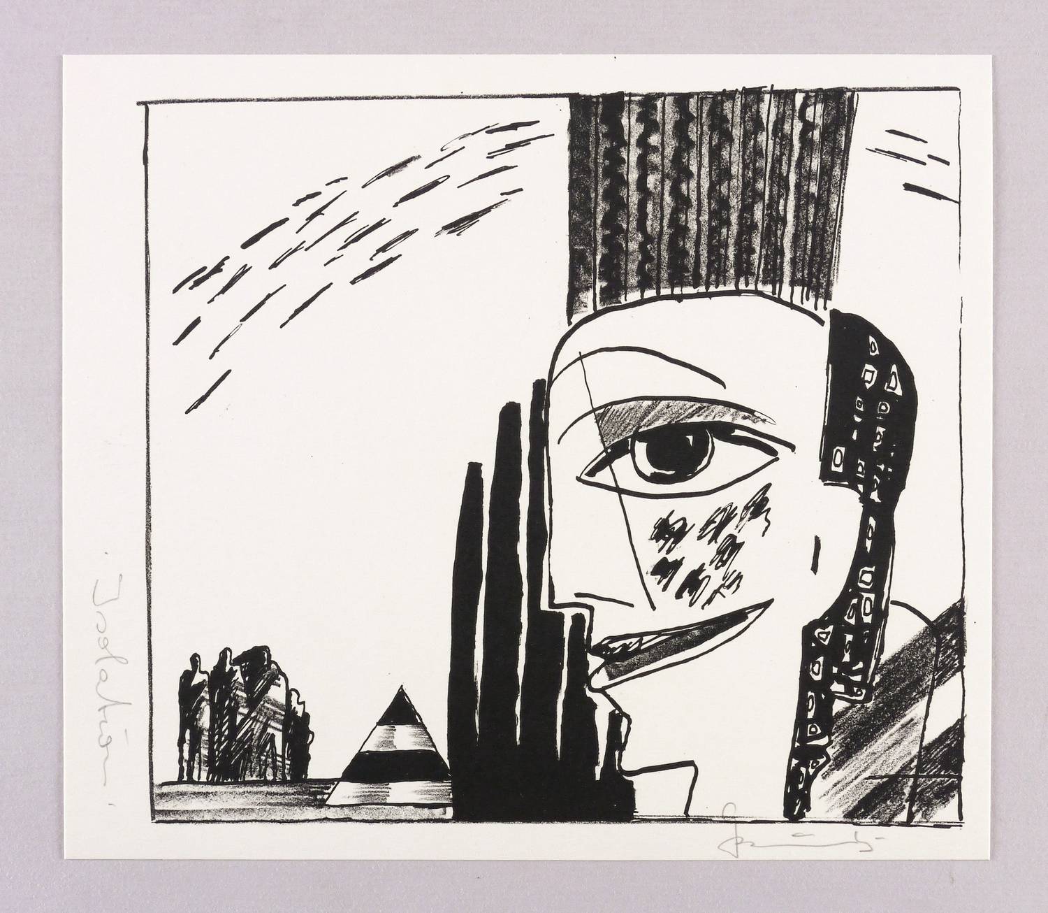 1985. Lithografie / Kreide- & Pinsellithografie, in Schwarz, auf hartem hellchamois Velin. – Originale Künstlergrafik, von Gottfried Bräunling. – 19,5 x 21,7 cm (Darstellung / Druckbild), 22 x 25 cm (Blatt).