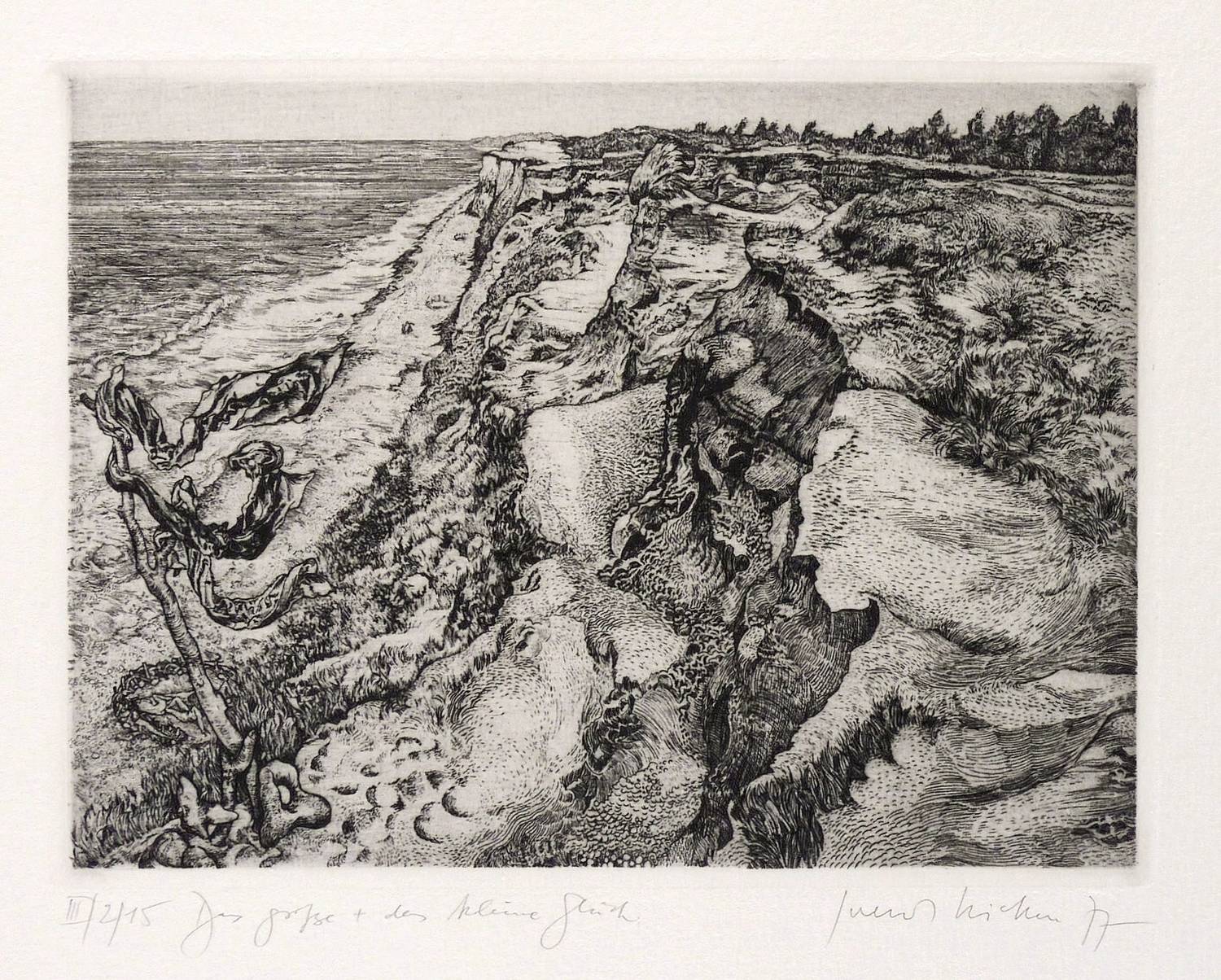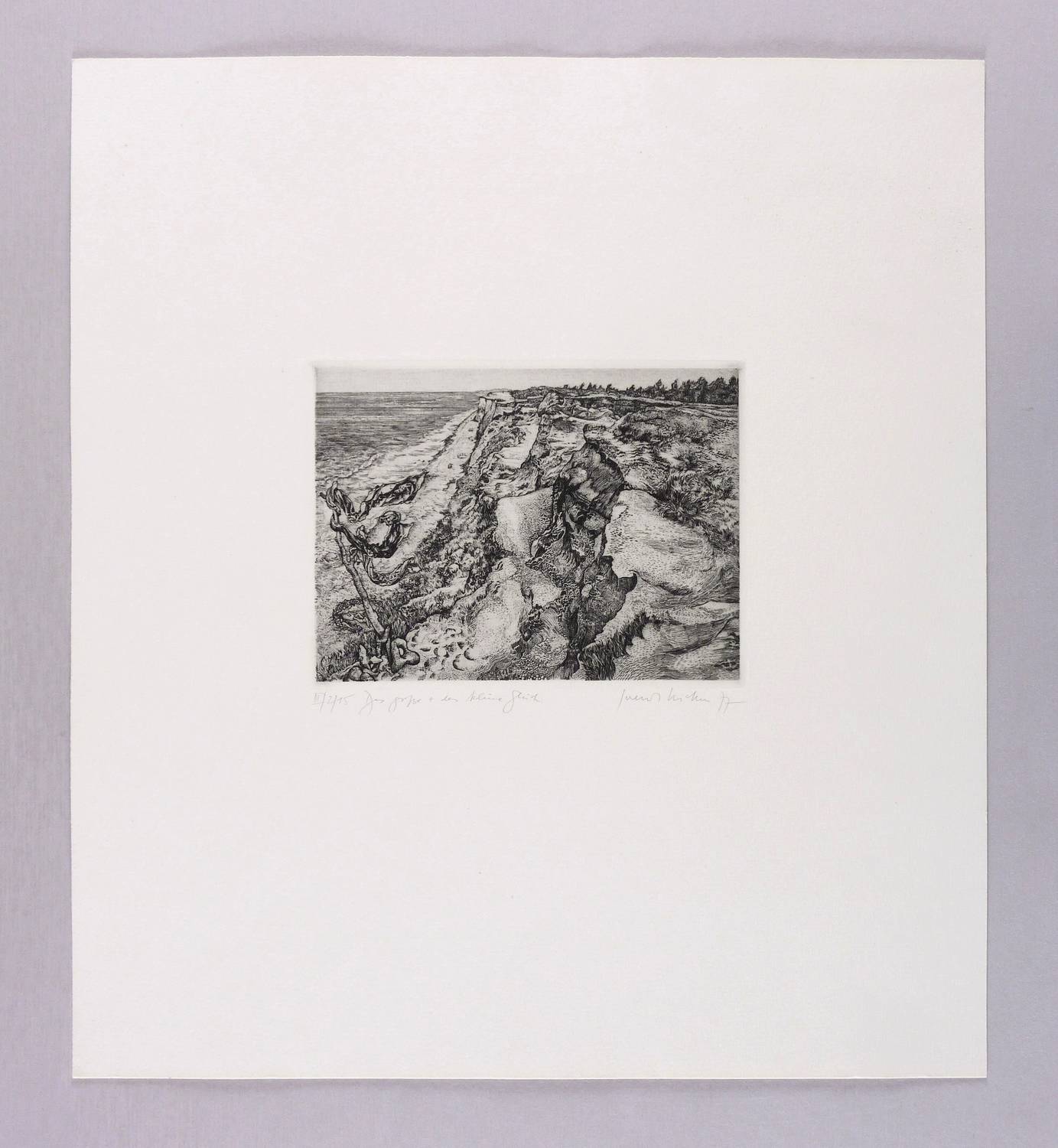 WVZ II-078. – Rechts unten in Bleistift signiert und datiert: ″Gerenot Richter 77″. Links Auflagenbezeichnung: ″II/2/15″. Dazu Titel: ″Das große + das kleine Glück″. – Radierung als Hommage zu Dürers 450. Todestag. – Ohne Mängel. Sehr guter Zustand.