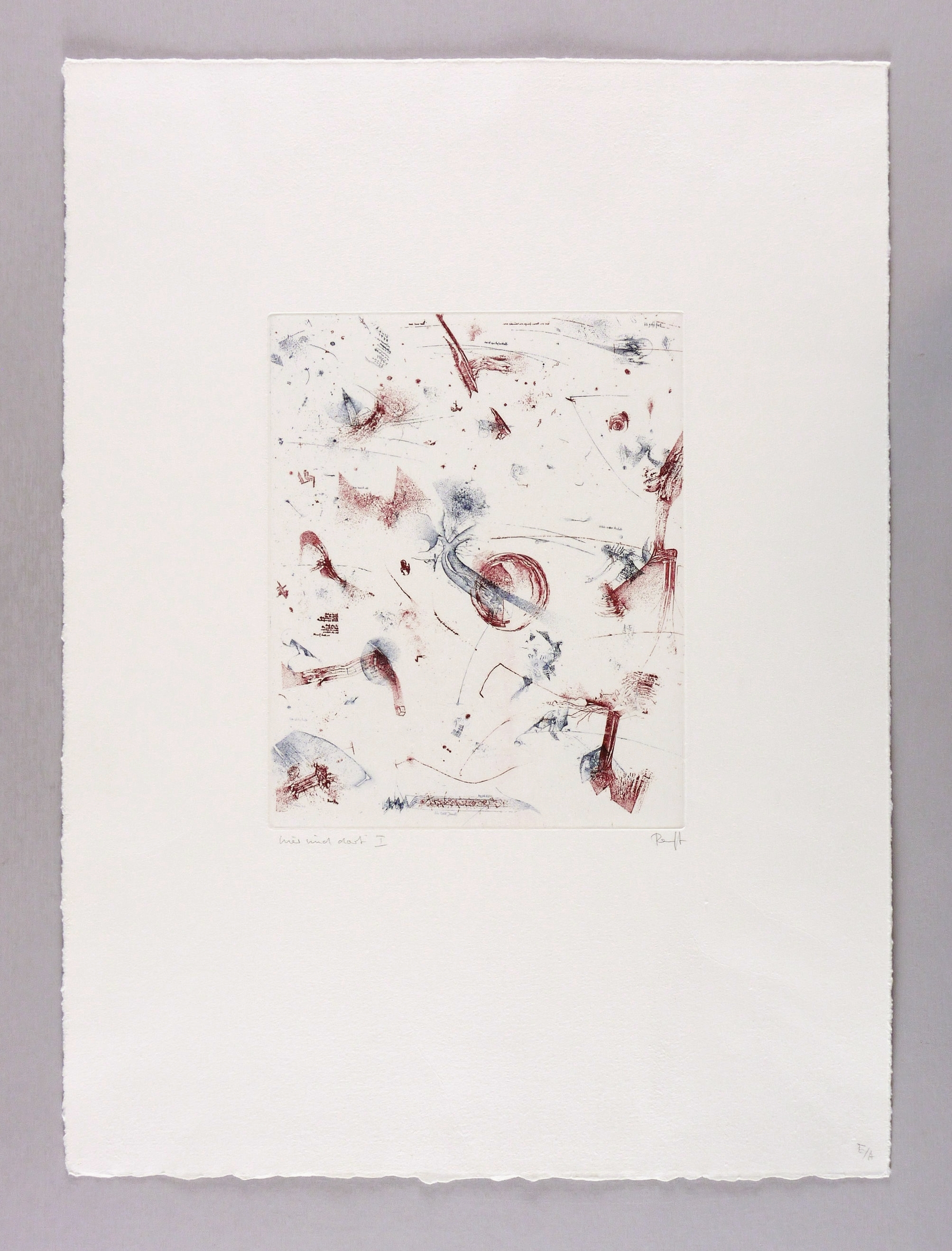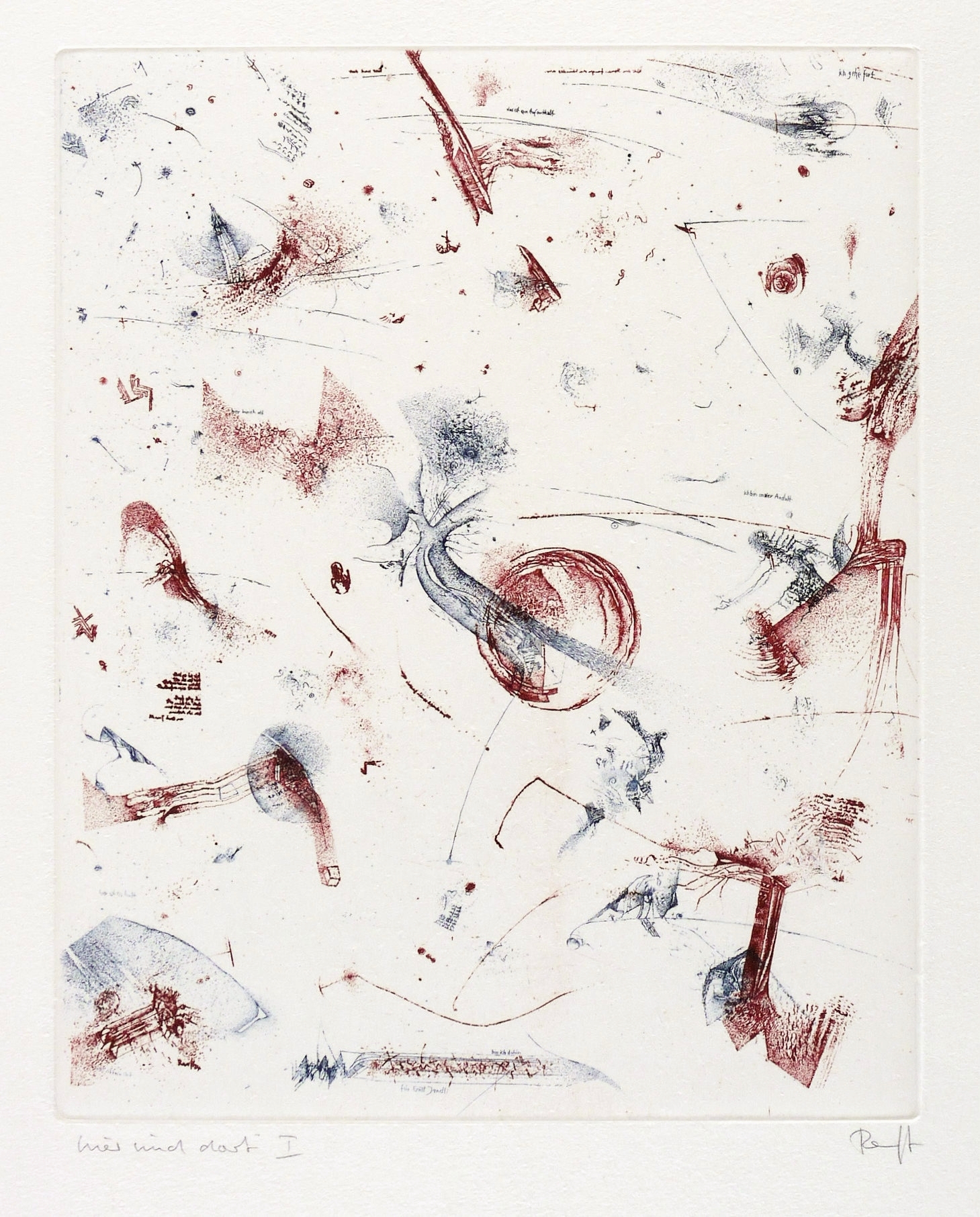1984. Farbradierung / Strichätzung, in Blau & Rot, auf kräftigem hellchamois Velin. – Originale Künstlergrafik, von Thomas Ranft. – Künstlerexemplar (e.a.). – 24,6 x 19,9 cm (Darstellung / Platte), 54 x 40 cm (Blatt).