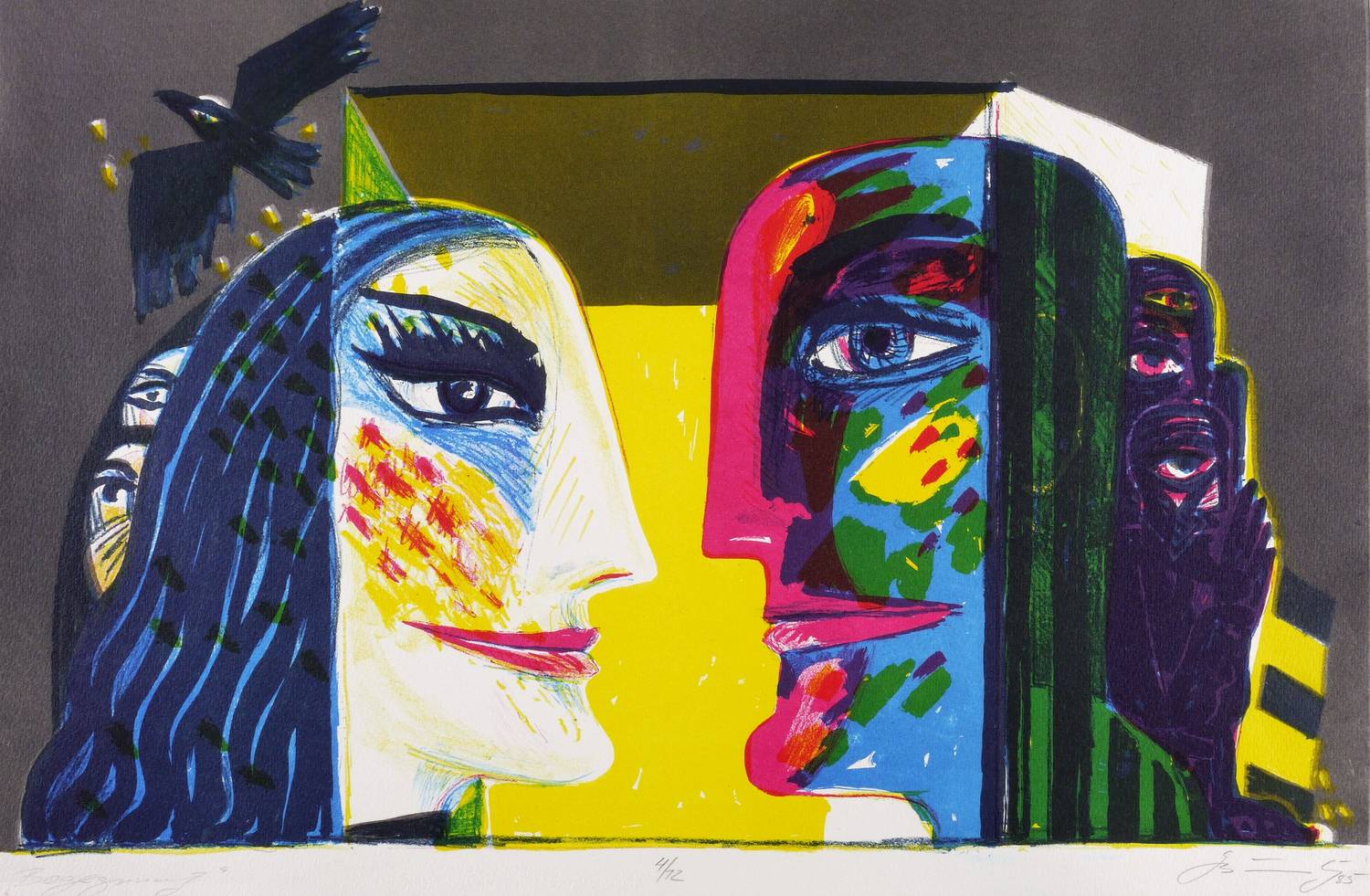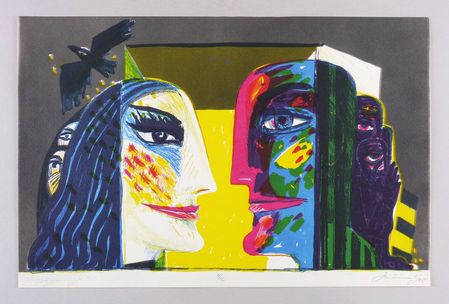 Rechts unten in Bleistift signiert und datiert: ″GBräunling 85″. Links Titel: ″Begegnung″. Mittig Auflagenbezeichnung: ″4/12″. – Sehr guter Zustand.
