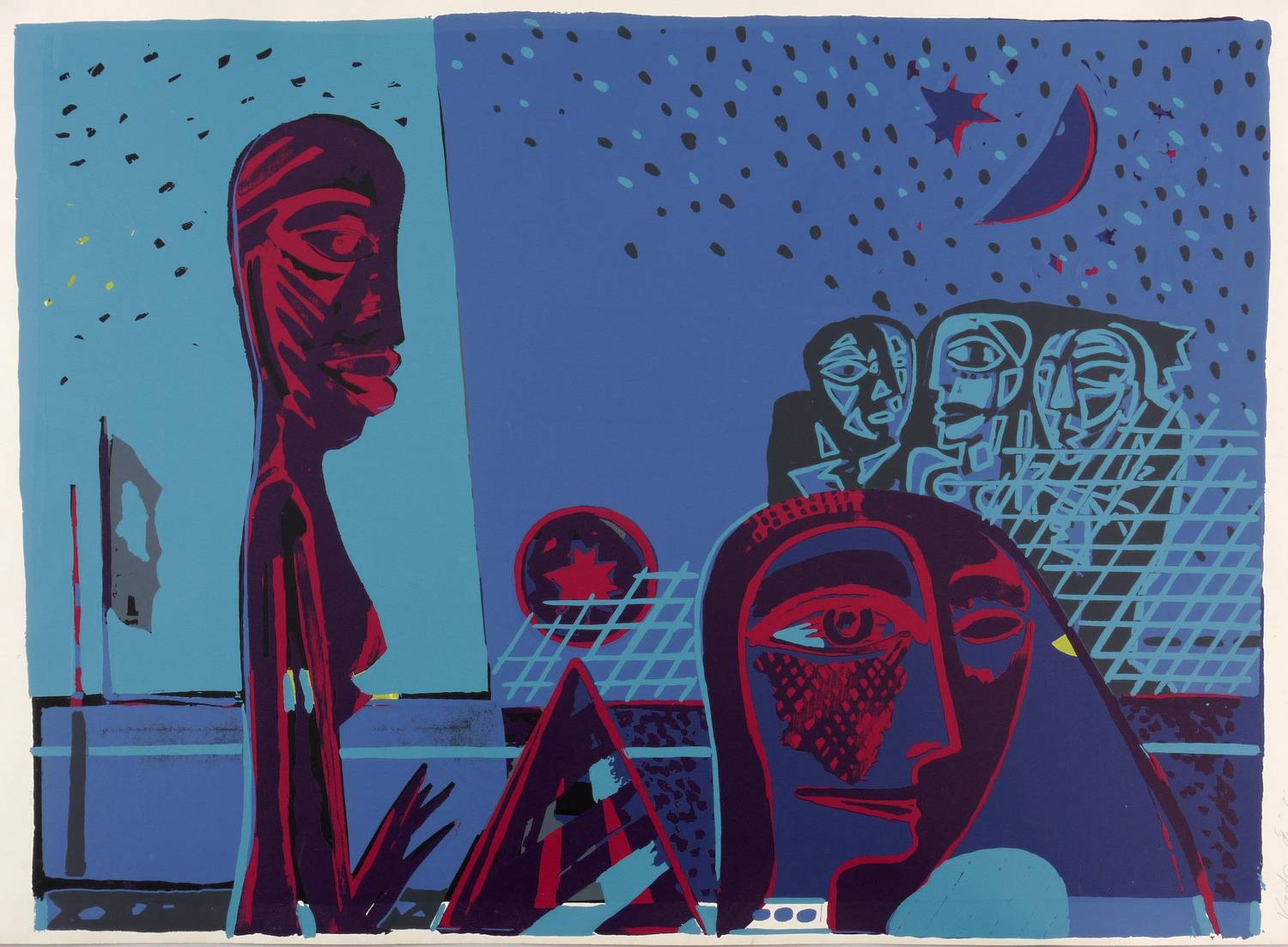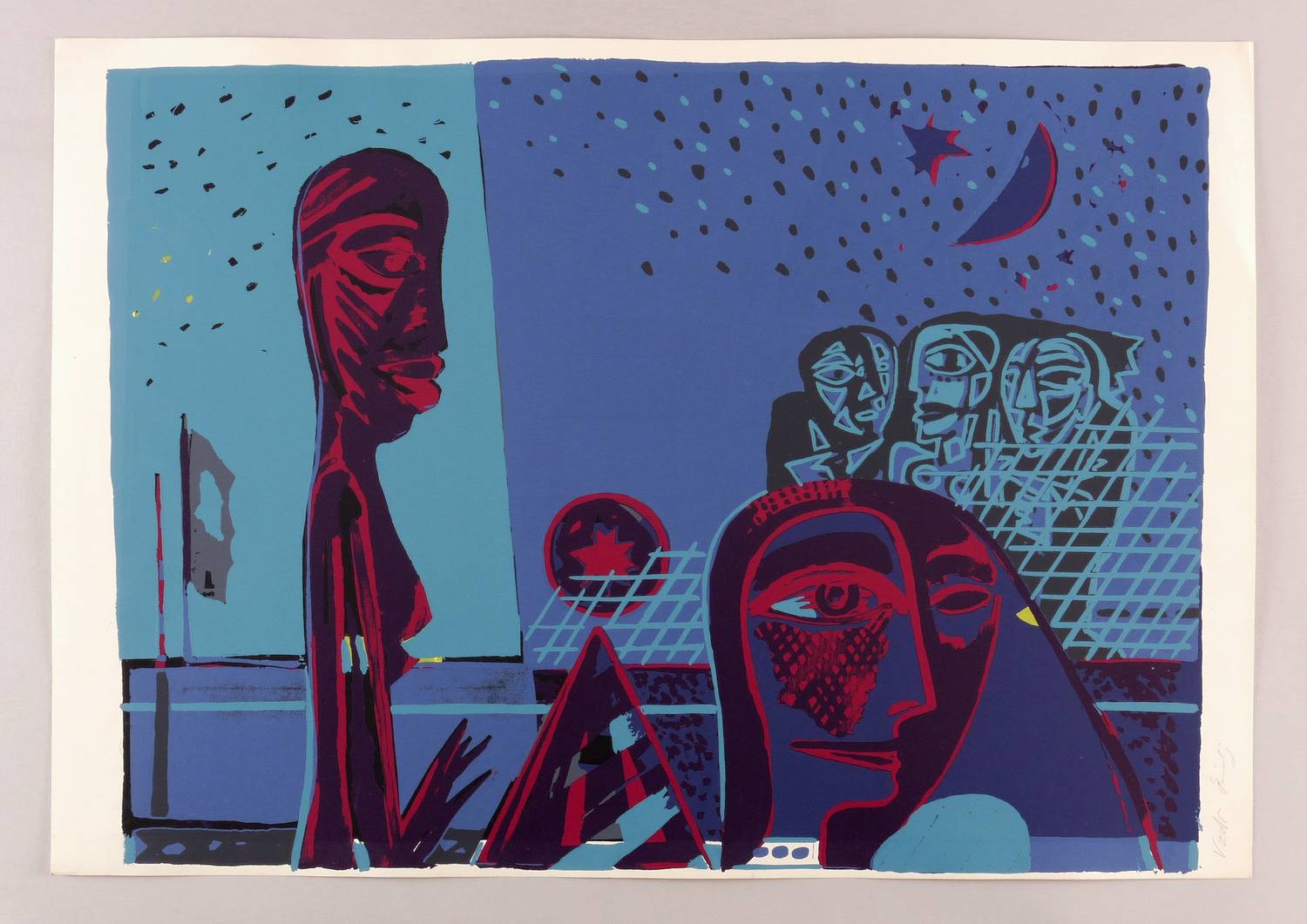 1980-1990. Farblithografie / Pinsellithografie, in 6 Farben, auf hartem hellchamois Velinkarton. – Originale Künstlergrafik, von Gottfried Bräunling. – Vorzugsdruck. – 49,5 x 66,8 cm (Darstellung / Druckbild), 52 x 73 cm (Blatt).