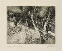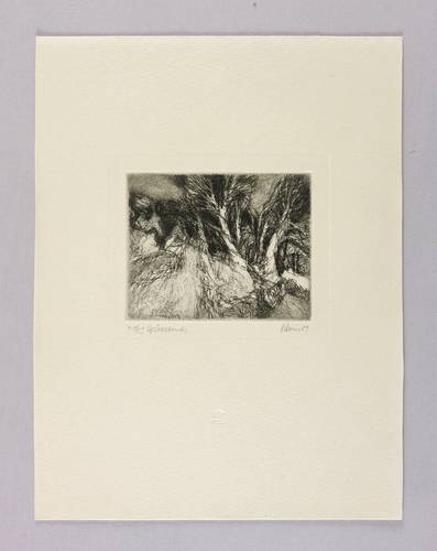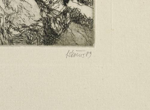 1989. Radierung / Kaltnadel, in Schwarz, auf hellchamois Velinkarton. – Originale Künstlergrafik, von Gottfried Körner. – Auflage Exemplar Nr. 18/100. – 7,4 x 9,2 cm (Darstellung / Platte), 24 x 18 cm (Blatt).