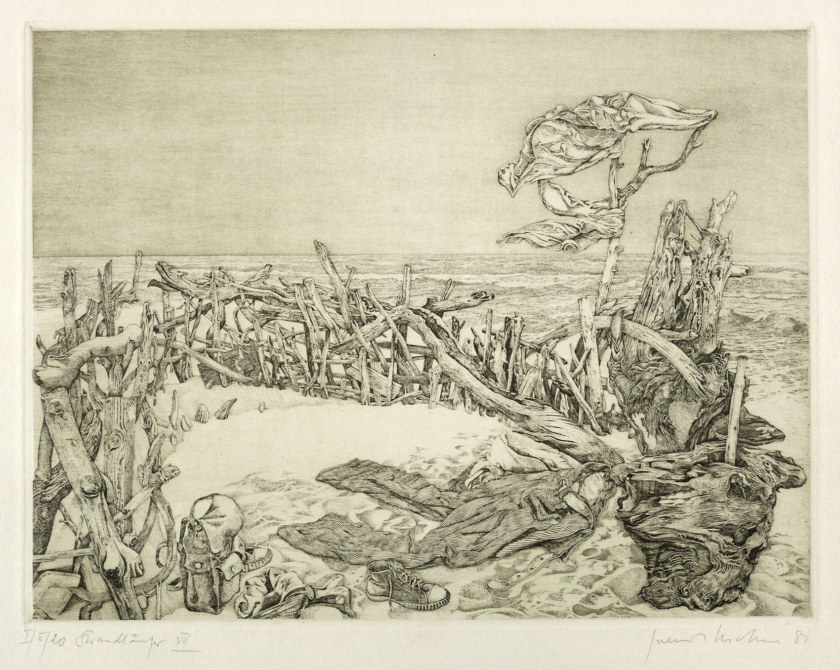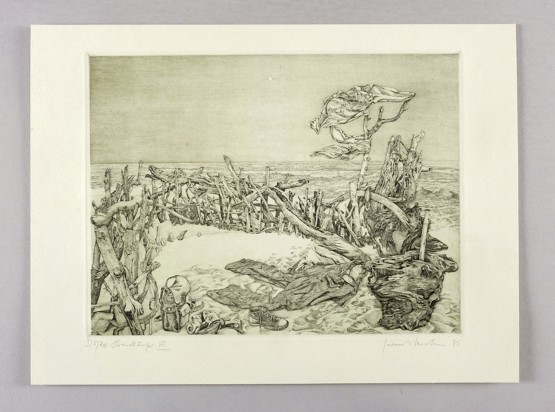 WVZ II-138. – Rechts unten in Bleistift signiert und datiert: ″Gerenot Richter 81″. Links Auflagenbezeichnung: ″I/5/20″. Dazu Titel: ″Strandläufer VII″ – Seltenes Exemplar der kleinen Auflage vor dem Zustand mit Aquatinta (siehe Abb. im WVZ 2016, S. 139). – Sehr guter Zustand.