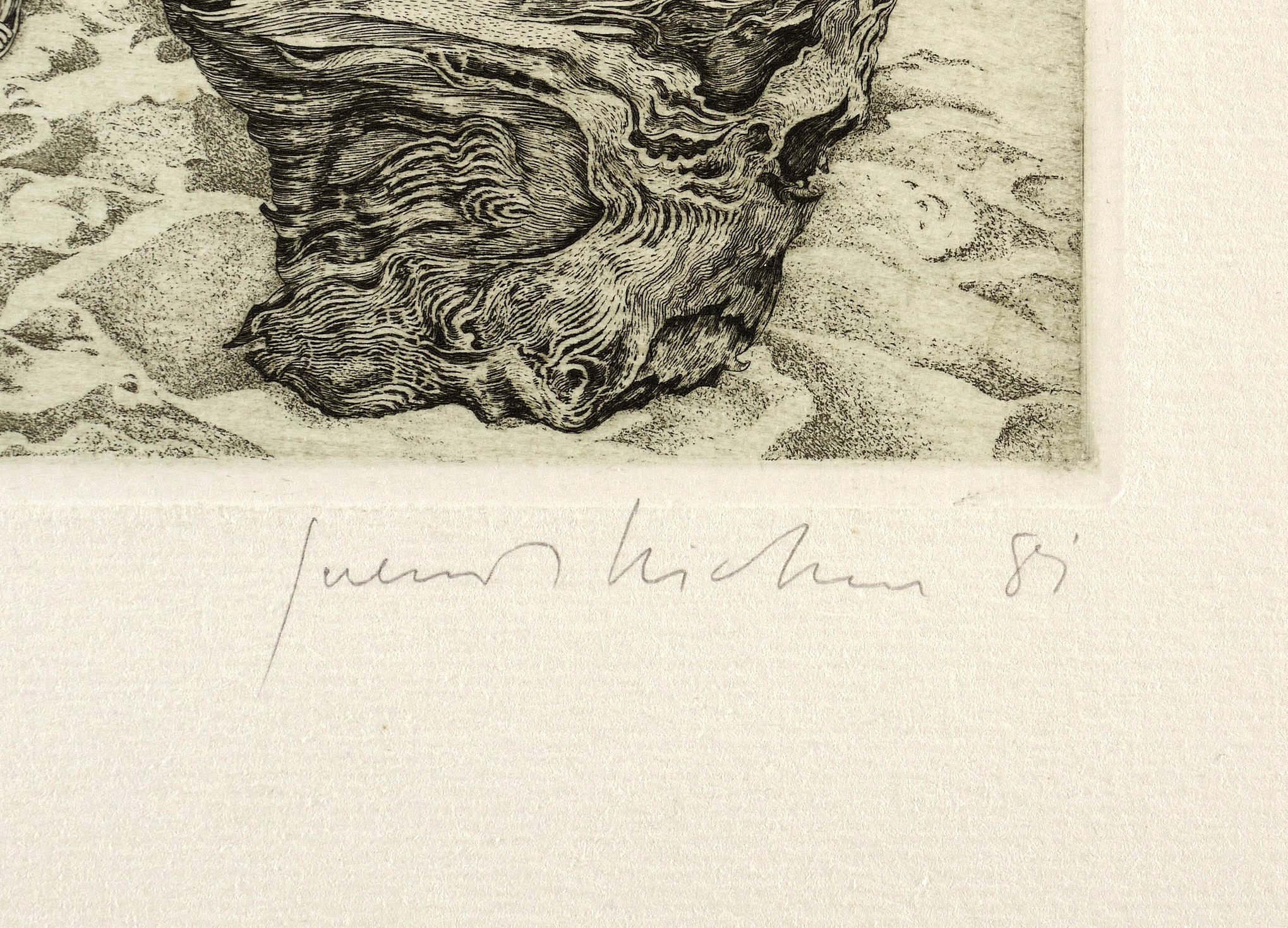 1981. Radierung / Strichätzung, in Schwarz, auf hartem hellchamois Weißenborn. – Originale Künstlergrafik, von Gerenot Richter. – Auflage Exemplar Nr. 5/20. – 24,3 x 31,6 cm (Darstellung / Platte), 31 x 41 cm (Blatt).