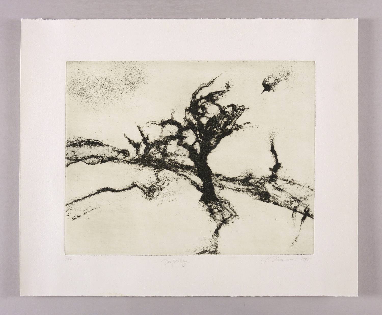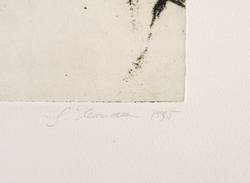 1995. Radierung / Aquatinta, in Schwarz, auf schwerem hellchamois Bütten. – Originale Künstlergrafik, von Gunter Herrmann. – Auflage Exemplar Nr. 4/7. – 27,8 x 35,6 cm (Darstellung / Platte), 40 x 48 cm (Blatt).