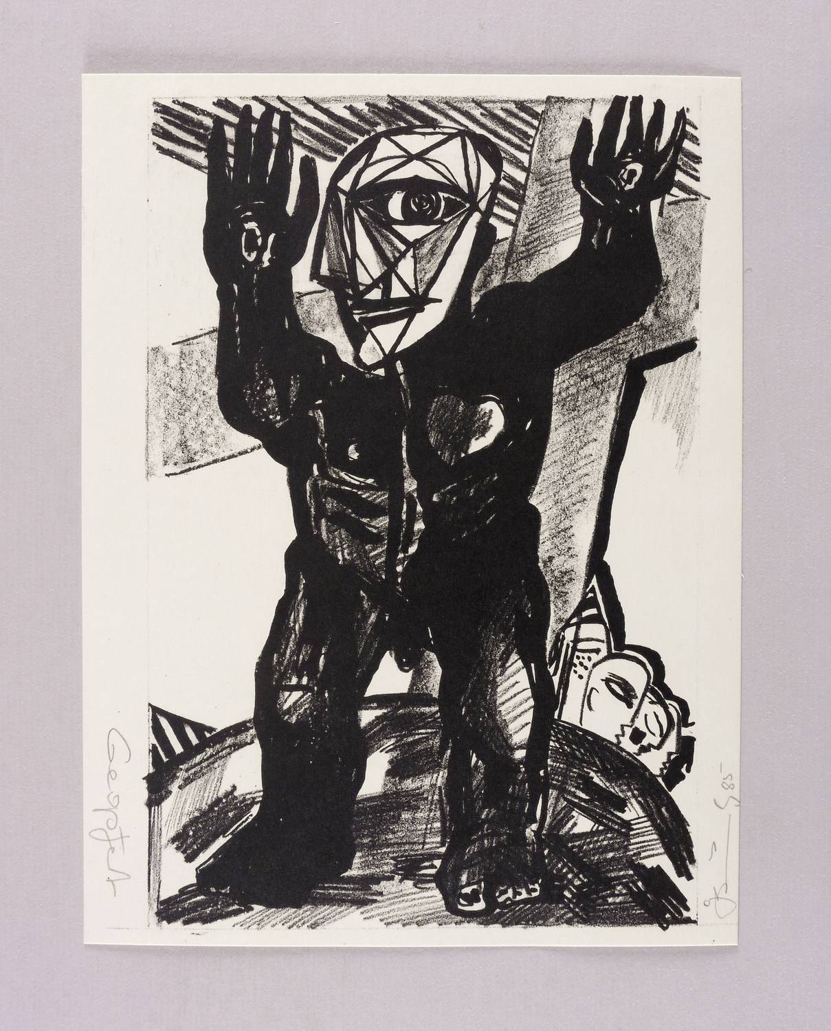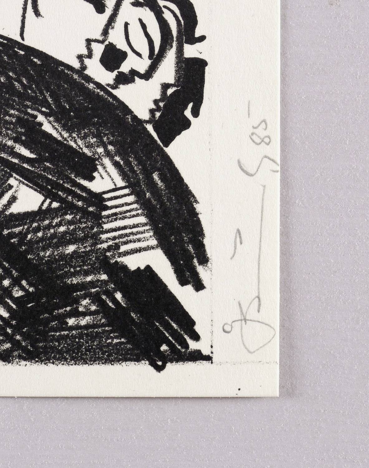 1985. Lithografie / Kreide- & Pinsellithografie, in Schwarz, auf hartem hellchamois Velin. – Originale Künstlergrafik, von Gottfried Bräunling. – 24,5 x 16,5 cm (Darstellung / Druckbild), 26 x 20 cm (Blatt).