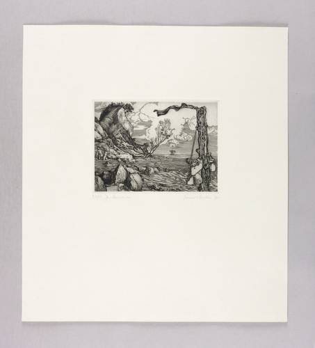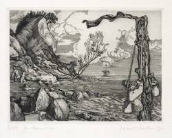 1977. Radierung / Strichätzung, in Schwarz, auf hellchamois Weißenborn. – Originale Künstlergrafik, von Gerenot Richter. – Auflage Exemplar Nr. 2/15. – 12,4 x 17,0 cm (Darstellung / Druckbild), 41 x 37 cm (Blatt), 13,1 x 17,7 cm (Platte).