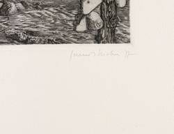 WVZ II-77. – Rechts unten in Bleistift signiert und datiert: ″Gerenot Richter 77″. Links Auflagenbezeichnung: ″II/2/15″. Dazu Titel: ″Das Meerwunder″. – Radierung als Hommage zu Dürers 450. Todestag. – Ohne Mängel. Sehr guter Zustand.