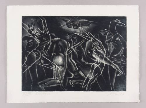 Rechts unten in Bleistift signiert und datiert: ″A. Dress 87″. Links Auflagenbezeichnung: ″V/XII″. Daneben Titel: ″Nachttanz″. Wasserzeichen der Hahnemühle. – Sehr guter Zustand.