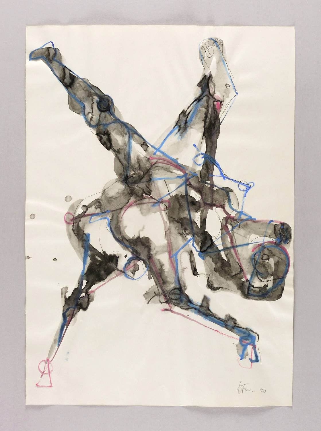 1990. Mischtechnik / Tusche, Aquarell & Farbkreide, auf hartem hellchamois Velin. – Originale Künstlergrafik, von Klaus-Michael Stephan. – Unikat. – 59,5 x 42,0 cm (Darstellung / Blatt).