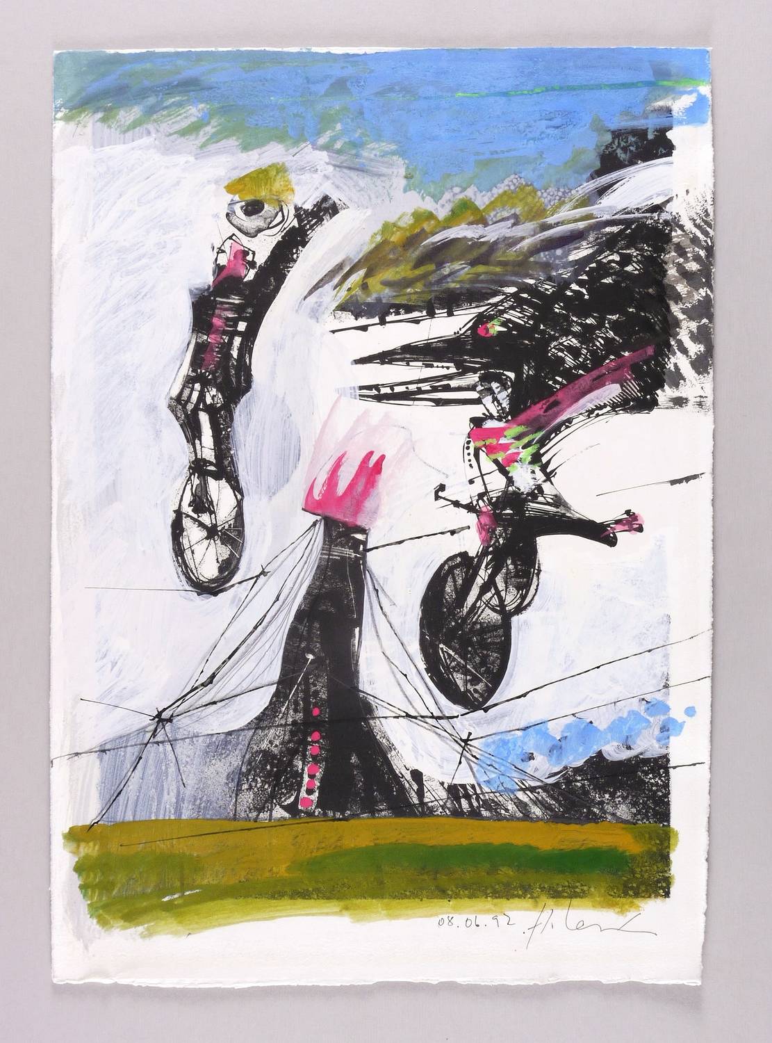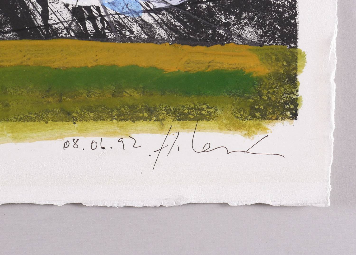 Rechts unten in schwarzer Feder signiert und datiert: ″08.06.92 H. León″. – Rückseite mit marginalen Montagespuren. Hervorragend erhalten. Sehr guter Zustand.
