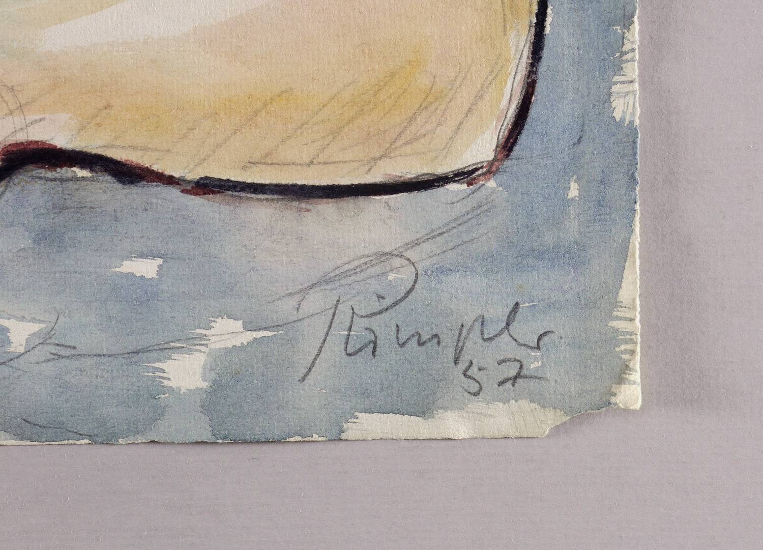 1957. Aquarell, partiell mit Bleistift unterzeichnet, auf rauem hellgelbem Hahnemühle. – Originale Künstlergrafik, von Römpler, Karl. – Unikat. – 62,5 x 49,0 cm (Darstellung / Blatt).
