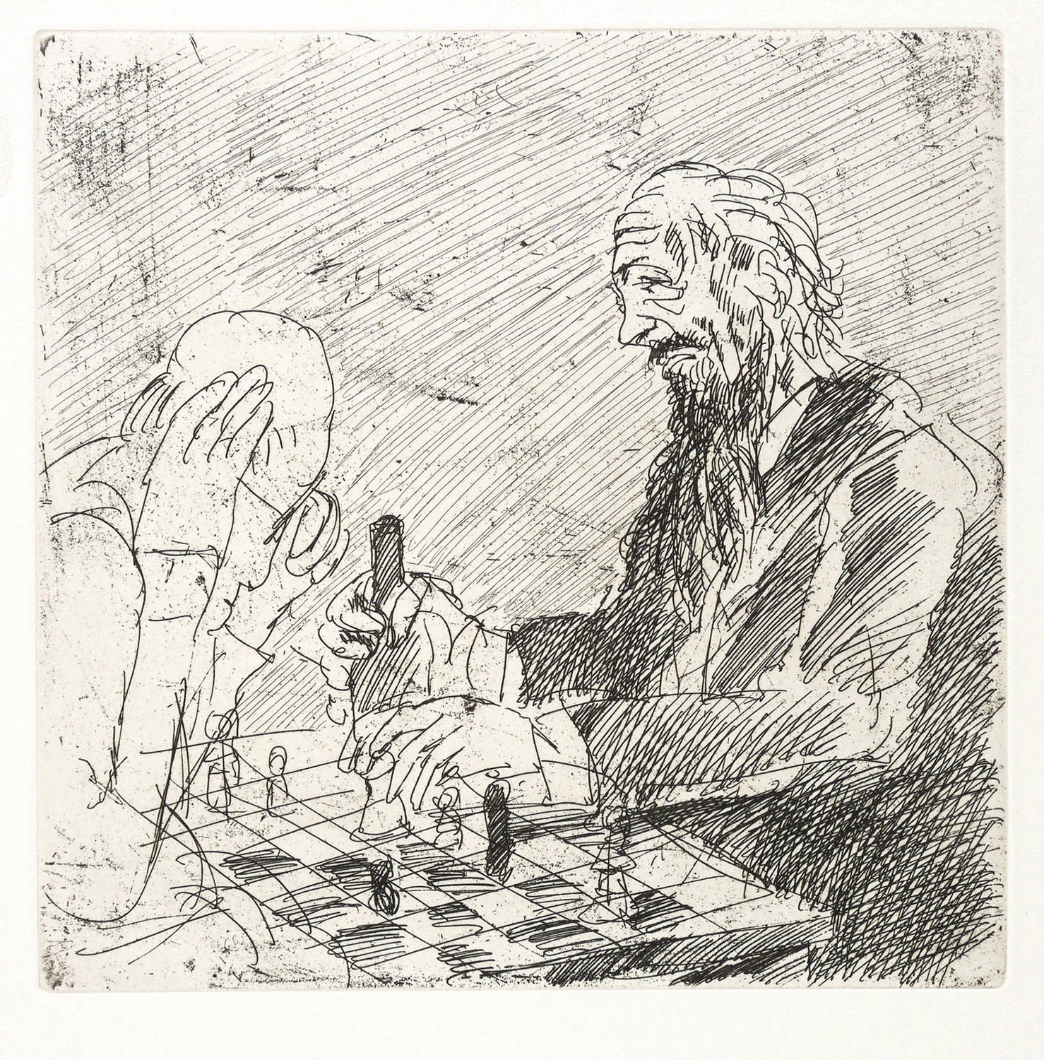 1982. Radierung / Strichätzung, in Schwarz, mit wenig Plattenton, auf weißem Velinkarton. – Originale Künstlergrafik, von Alfred Hrdlicka. – Auflage 2800 Exemplare. – 19,8 x 19,9 cm (Darstellung / Platte), 26 x 22 cm (Blatt).