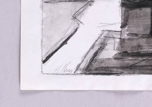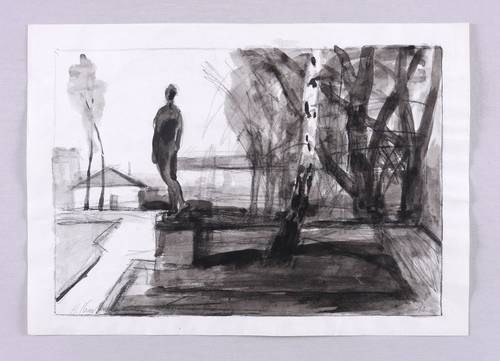 2010. Zeichnung / Kohle & Aquarell, auf Papier. – Originale Künstlergrafik, von Hans Kutschke. – Unikat. – 18,5 x 26,5 cm (Darstellung), 21 x 29,7 cm (Blatt).