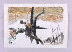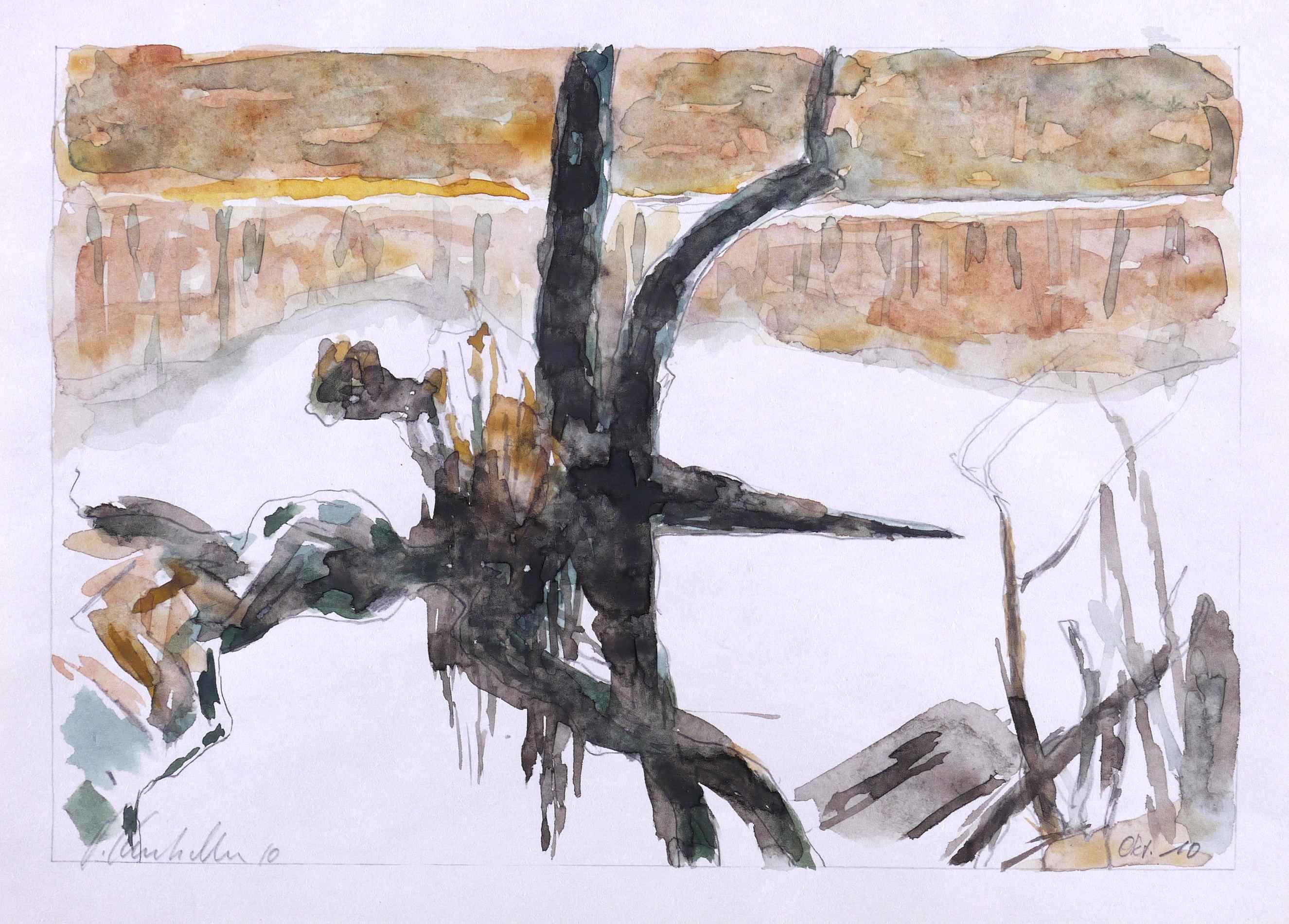 2010. Aquarell, über Bleistift, auf Papier. – Originale Künstlergrafik, von Hans Kutschke. – Unikat. – 18,0 x 26,5 cm (Darstellung), 21 x 29,7 cm (Blatt).