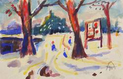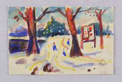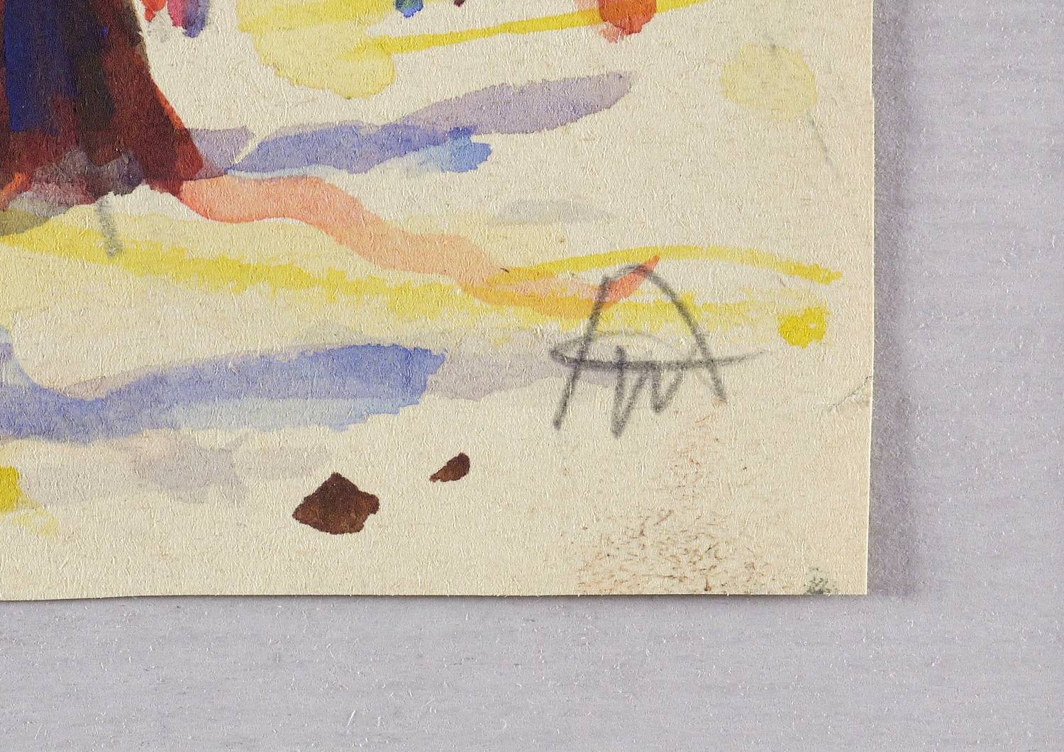 Um 1950. Aquarell, auf leichtem hellchamois Velin. – Originale Künstlergrafik, von Alexander Wolfgang. – Unikat. – 10,3 x 15,4 cm (Darstellung / Blatt).