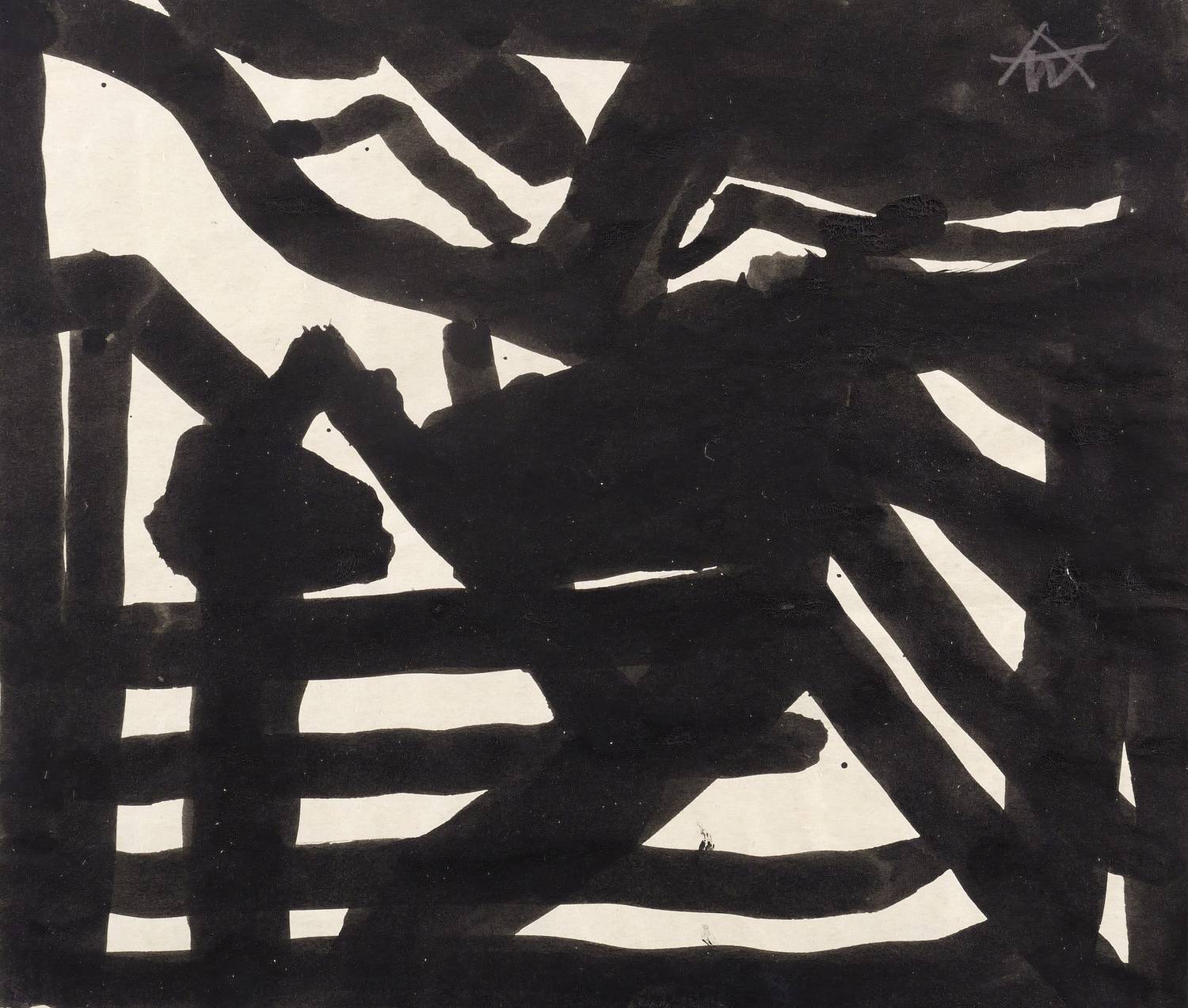 1950-1960. Zeichnung / Pinselzeichnung, in schwarzer Tusche, auf leichtem gelblichem Velin. – Originale Künstlergrafik, von Alexander Wolfgang. – Unikat. – 12,7 x 14,5 cm (Darstellung / Blatt).