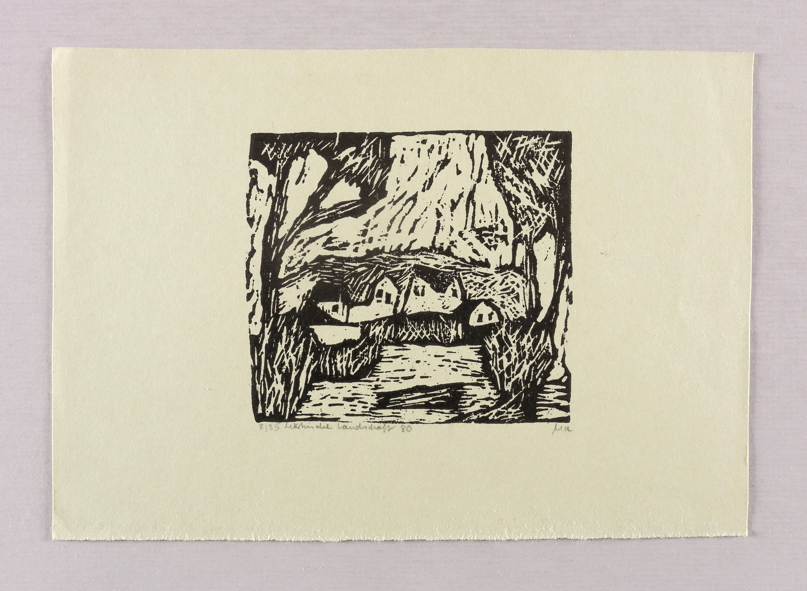 1980. Holzschnitt, in Schwarz, auf hellgrün getöntem Velin. – Originale Künstlergrafik, von Marlis Lilge. – Auflage Exemplar Nr. 8/35. – 9,3 x 10,4 cm (Darstellung / Platte), 16 x 23 cm (Blatt).