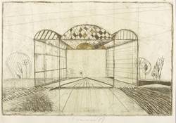 1981. Radierung / Strichätzung, in Schwarz, auf hartem hellchamois Weißenborn. – Originale Künstlergrafik, von Anton Paul Kammerer. – 20,0 x 29,4 cm (Darstellung / Platte), 21,3 x 30,4 cm (Blatt).