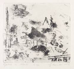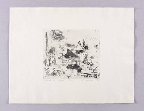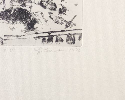 1976. Radierung / Vernis mou, in Schwarz, auf hellchamois Weißenborn. – Originale Künstlergrafik, von Gunter Herrmann. – Auflage Exemplar Nr. 2/6. – 14,4 x 16,2 cm (Darstellung / Platte), 28 x 36 cm (Blatt).