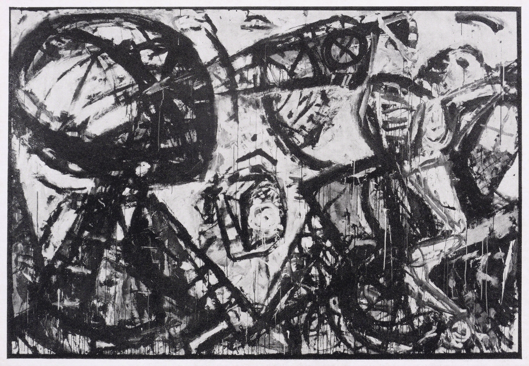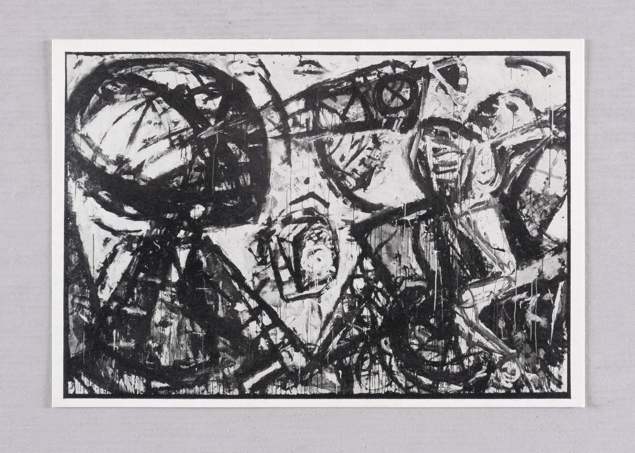 Verso in Faserstift Kartengruß der Künstler an Gerlint und Gert Söder mit Unterschrift bzw. Signatur von Petrovsky. – Fotomechanische Bildreproduktion nach dem großformatigen Gemälde ″Höllenfahrt″ von Wolfgang Petrovsky und Frank Voigt (1983, 265 x 170 cm). – Provenienz: Sammlung Gerlint und Gert Söder, Dresden. – Tadellos erhalten. Sehr guter Zustand.