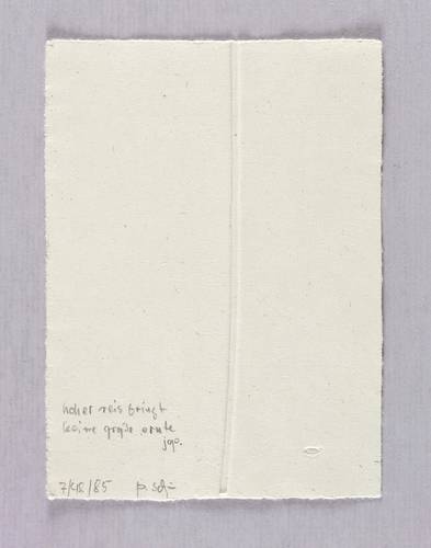 1985. Reliefdruck / Prägedruck, ohne Farben, auf rauem chamois Bütten. – Originale Künstlergrafik, von Fritz Peter Schulze. – Auflage Exemplar Nr. 7/48. – 14,4 x 10,5 cm (Darstellung / Blatt).