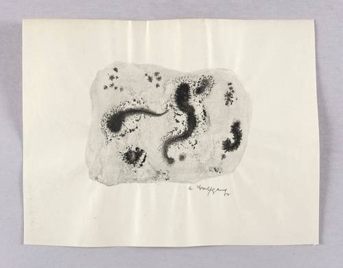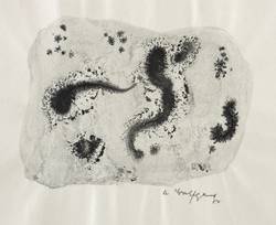Rechts unten in Bleistift signiert: ″A. Wolfgang″. – Wie ein Aquarell sehr nass gearbeitet, mit häufig zufällig entstandenen Pigment- Verläufen. – Blattränder vom Herstellungsprozess leicht gewellt. Sonst sehr guter Zustand.