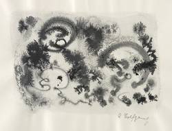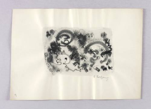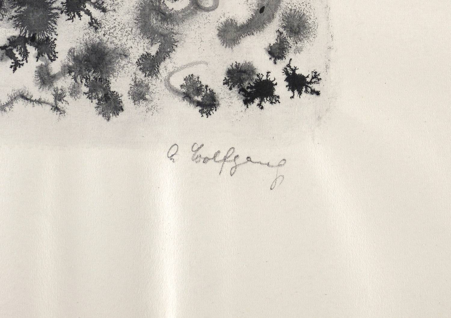 Rechts unten in Bleistift signiert: ″A. Wolfgang″. Links unten nummeriert: ″9″. – Wie ein Aquarell sehr nass gearbeitet, mit häufig zufällig entstandenen Pigment- Verläufen. – Blattränder vom Herstellungsprozess leicht gewellt. Sonst sehr guter Zustand.