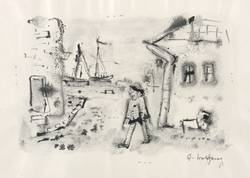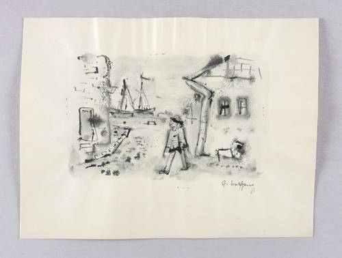 1930-1935. Zeichnung / Pinsel- & Federzeichnung, in schwarzer Tusche, auf glattem hellgelbem Maschinenpapier. – Originale Künstlergrafik, von Alexander Wolfgang. – Unikat. – 12,5 x 19,0 cm (Darstellung), 21 x 28 cm (Blatt).
