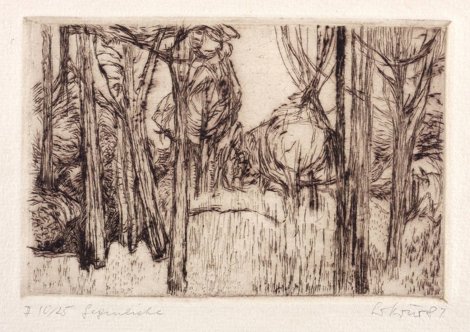 Rechts unten in Bleistift signiert und datiert: ″GKörner 81″. Links Auflagenbezeichnung und Titel: ″10/25 Gegenlicht″. – Sehr guter Zustand.