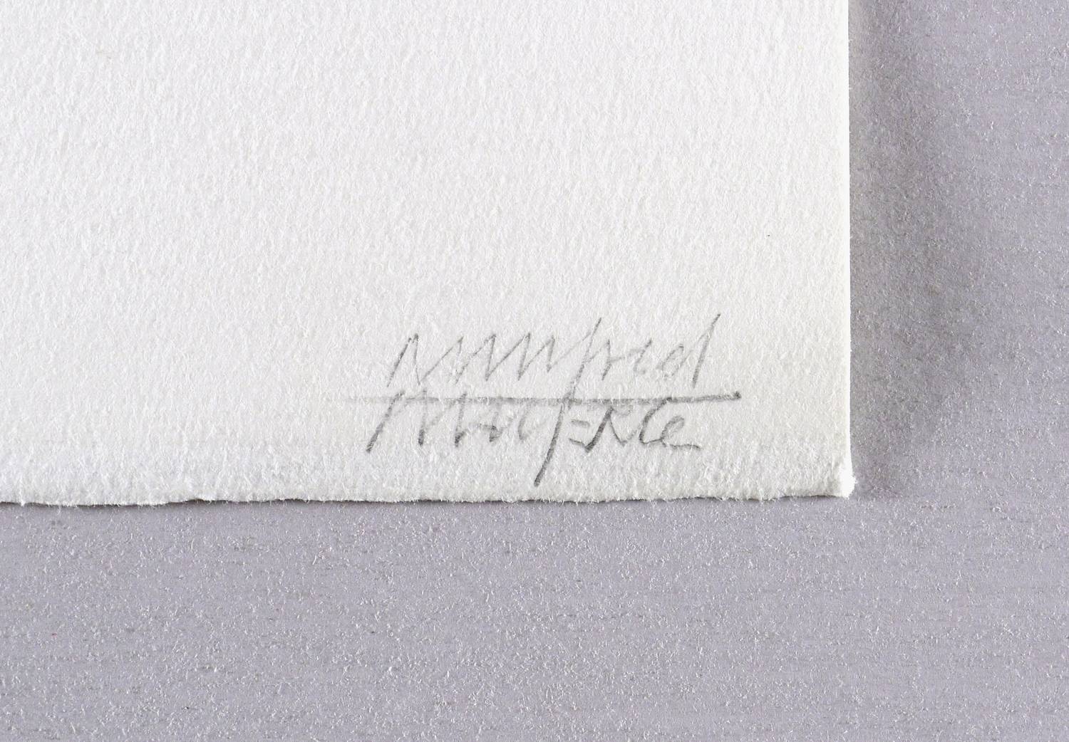 Rechts unten in Bleistift signiert: ″Manfred Mayerle″. In der Blattecke links unten Auflagenbezeichnung: ″5/30″. Dazu Datierung: ″12/1998″. – Papier mit leichten Griff- und Knickspuren im Rand. Mäßig guter Zustand.