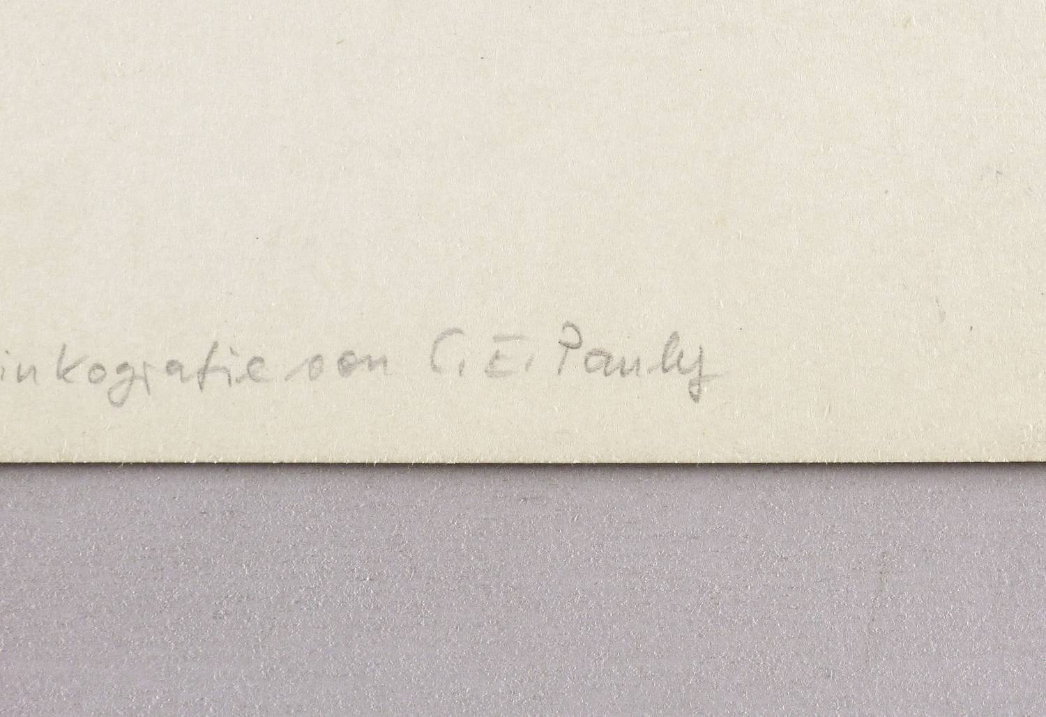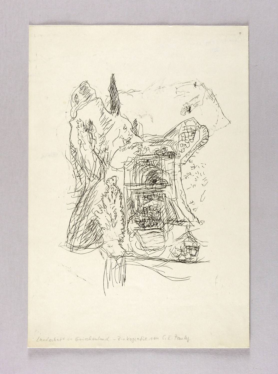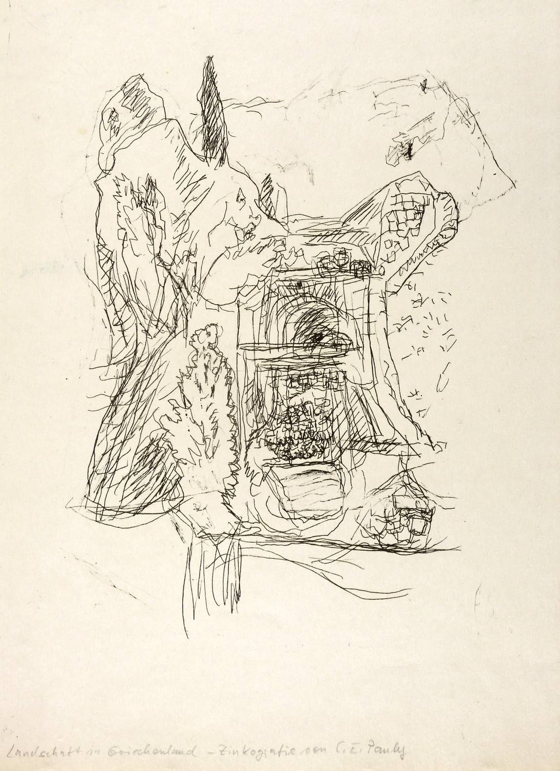 Nicht handsigniert. Unterhalb von fremder Hand in Bleistift bezeichnet: ″Landschaft in Griechenland - Zinkografie von C.E. Pauly″. – Sehr guter Zustand.
