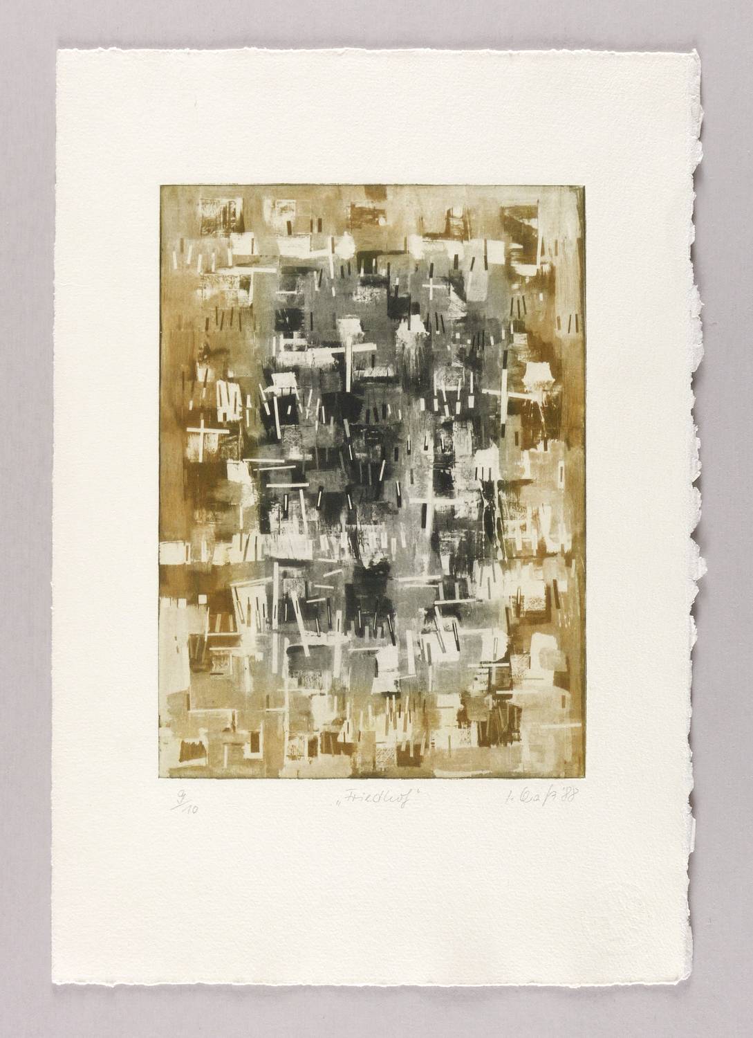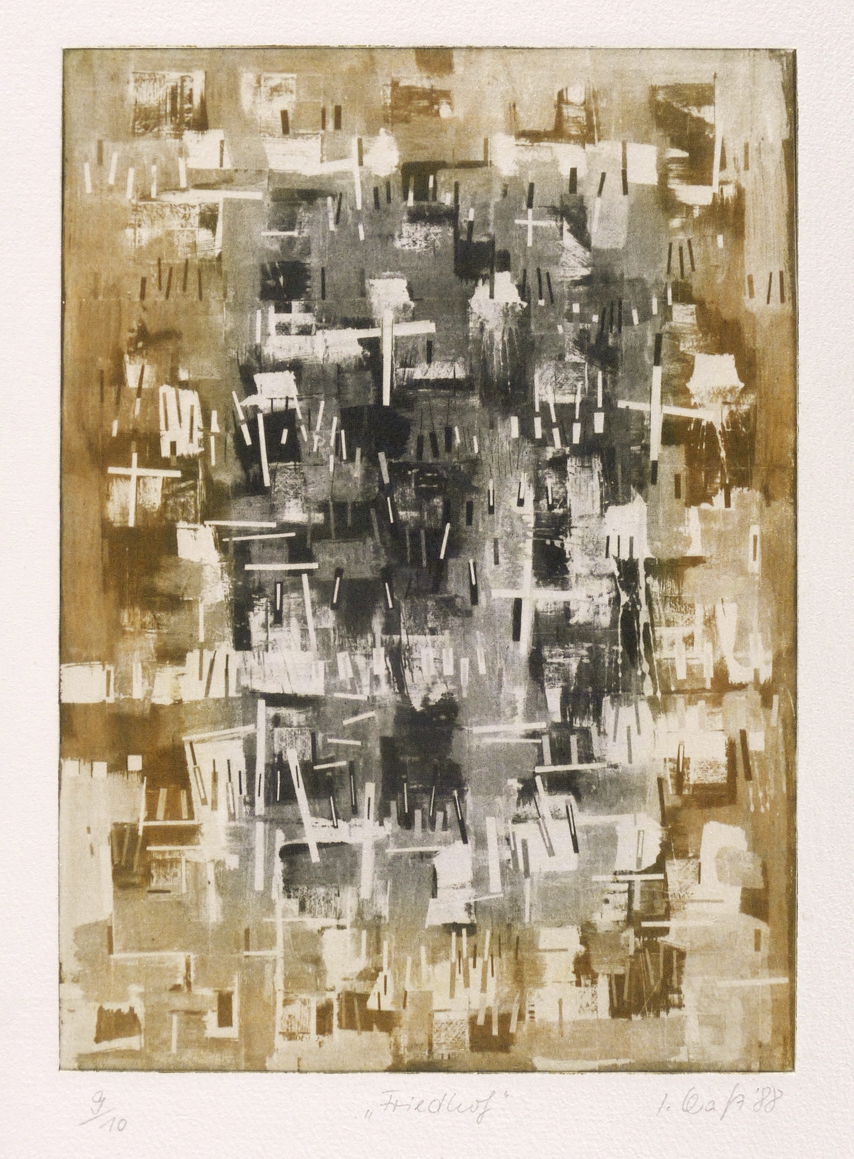 Rechts unten in Bleistift signiert und datiert: ″I. Kraft 88″. Links Auflagenbezeichnung: ″9/10″. Mittig Titel: ″Friedhof″. – Originalrandiges Exemplar. Tadellos. Sehr guter Zustand.