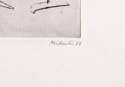 1987. Radierung / Kaltnadel, in Schwarz, auf hellgelbem Velinkarton. – Originale Künstlergrafik, von Paul Michaelis. – Auflage Exemplar Nr. 6/10. – 40 x 29 cm (Blatt), 22,1 x 15,0 cm (Darstellung / Platte).