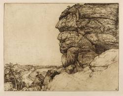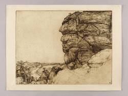 Rechts unten in Bleistift signiert: ″Ferdinand Steiniger.″ Links Titel: ″Blick vom Lilienstein ins weite Land.″ In der Platte rechts unten Monogramm und Jahr: ″FST 1915″. – Sehr guter Zustand.