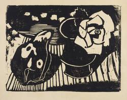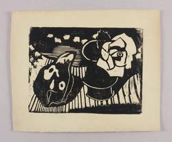 Um 1950. Holzschnitt, in Schwarz, auf festem gelbem Velinkarton. – Originale Künstlergrafik, von Wilhelm Lachnit. – 17,5 x 23,2 cm (Darstellung / Druckbild), 25 x 31 cm (Blatt).