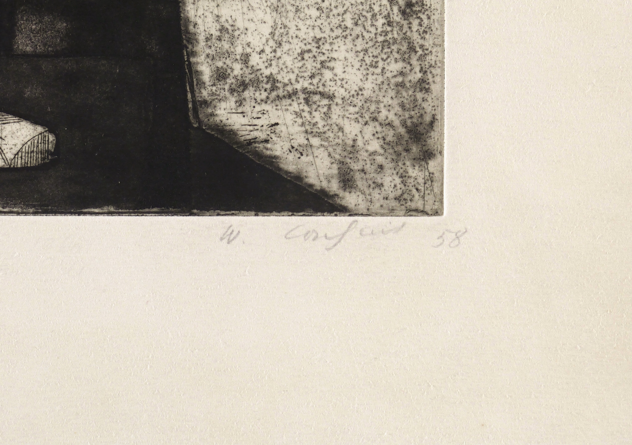 1958. Radierung / Aquatinta, in Schwarz, auf festem hellgelbem Velinkarton. – Originale Künstlergrafik, von Wilhelm Lachnit. – Auflage Exemplar Nr. 6/30. – 24,5 x 18,5 cm (Darstellung / Platte), 36 x 29 cm (Blatt).