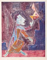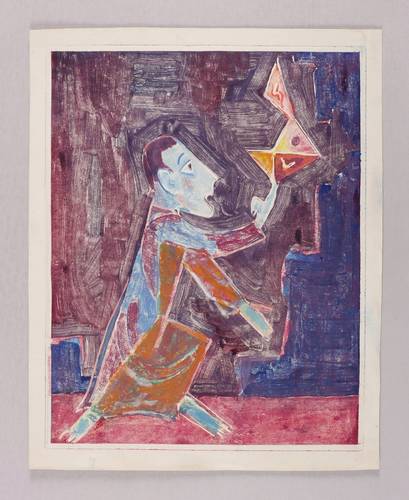 1950-1960. Farbmonotypie, auf hellgelbem Velinkarton. – Originale Künstlergrafik, von Kurt Schütze. – Unikat. – 31,7 x 25,0 cm (Darstellung / Druckbild), 36 x 29 cm (Blatt).
